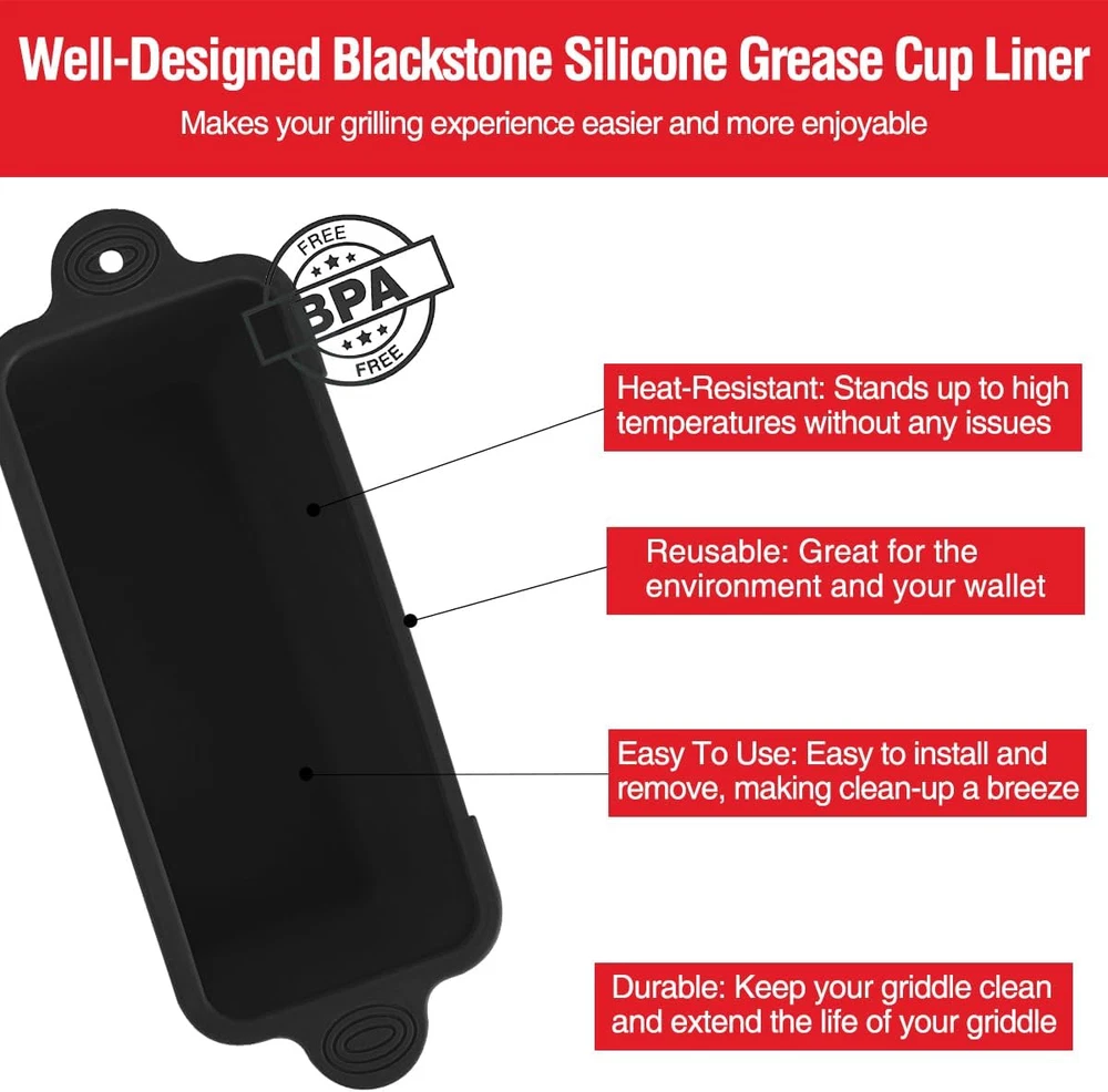 Store New Arrivals Add to Favorite View Feedback Contact Grease Catcher Drip Pans for Blackstone 28 & 36 Inch Griddle, Replacement Description Item model number fyouhe-heise2pk Item Weight 0.22 Kilograms Color Black Material Silicone Country of Origin China Is Dishwasher Safe Yes Has Nonstick Coating No Shape Rectangular Package Dimensions 8.43 x 3.07 x 2.05 inches Must Have Blackstone Griddle Accessories: 2 Pack Silicone Grease Cup Liners for Blackstone Grill. No more scrubbing and scraping the grease and residue from the griddle, makes your cooking/grilling experience easier and more enjoyable. Silicone grease cups measure 7 x 3.3 x 2.8 inches and are designed to fit perfectly on 36/28/22/17 inch Blackstone grills Easy to Clean & Dishwasher Safe: These reusable drip pan liners make cleaning the grill a breeze. Cleaning the liners is incredibly easy too. You can either wash them with ordinary detrgent and water or just wipe with paper towel and throw them in the dishwasher, allowing to quickly remove any grease or residue without any hassle Better than the Aluminum Foil Pans/Liners: Still keep buying disposable aluminum foil pans? Aluminum foil pans are easy to leak, easy to blow away, and the griddle grease catcher will be an absolute mess. Silicone are soft so no worry about accidentally cutting the fingers on the foil pans. No more wasting money on a lot of disposal foil trays. Great value actually saves you money and pays for itself almost immediately Reusable, Durable & Heat-Resistant: The Grill Grease Cup Liners are made of heat-resistant silicone material that can withstand high temperatures and rough outdoor conditions. They are also reusable, which is great for the environment and your wallet. Unlike disposable foil trays, these silicone trays are non-t0xic, non-hazard0us, and can be used over and over again. The silicon pan is also much easier to remove than regular aluminum pans for disposal of grease and cleaning Keep Your Griddle Clean & Extend the Life of Your Griddle: The Grill Grease Cup Liners provide a convenient, efficient, and eco-friendly solution for keeping your grill clean. If you're looking for a reliable and affordable way to make your grilling experience easier, these silicone Blackstone grease cup liners are definitely worth considering AKSDTH 2 Pack Blackstone Silicone Grease Cup Liners for 36 28 22 17 Inch Griddle, Reusable Grease Catcher Liner Grill Grease Tray Blackstone Accessories, Replacement of Aluminum Foil Drip Pans, Black ABOUT US We offer high-quality home products at competitive prices. At laydremgoodsofficial , we're committed to providing a seamless and satisfying shopping experience with a touch of American comfort. SHIPPING We are always working hard to ensure your package arrives as soon as possible. Please understand that some factors like weather, high postal traffic, and the performance of shipping companies are outside of our control. We offer free shipping to the lower 48 states and ship within 2 business days of payment, usually sooner. We do not accept P.O. Boxes. Please provide a physical address. Orders ship within 1–2 business days after payment Standard delivery: 3–5 business days Expedited shipping options available U.S. domestic orders only RETURNS We offer a 30-Day Return Policy on items which you are not completely satisfied with. You have the option for a full-refund or an exchange of the item. Item must be in original condition Original packaging and tags included Return request made within 30-day window For assistance, message us through eBay. PAYMENT Our Payment methods managed by eBay. CONTACT US This page content is yet to come Please ad us to your favorite seller and visit again later Thank You WHY BUY FROM US U.S.-based & fast shipping Premium quality home & travel accessories Top-rated customer satisfaction Responsive and friendly communication CUSTOMER SATISFACTION We try our very best to make sure every customer is completely satisfied. If there's a problem, message us! We're happy to help. We're available 24/7 via eBay messaging. Whether you have questions about products, tracking, or returns — we're here to help!