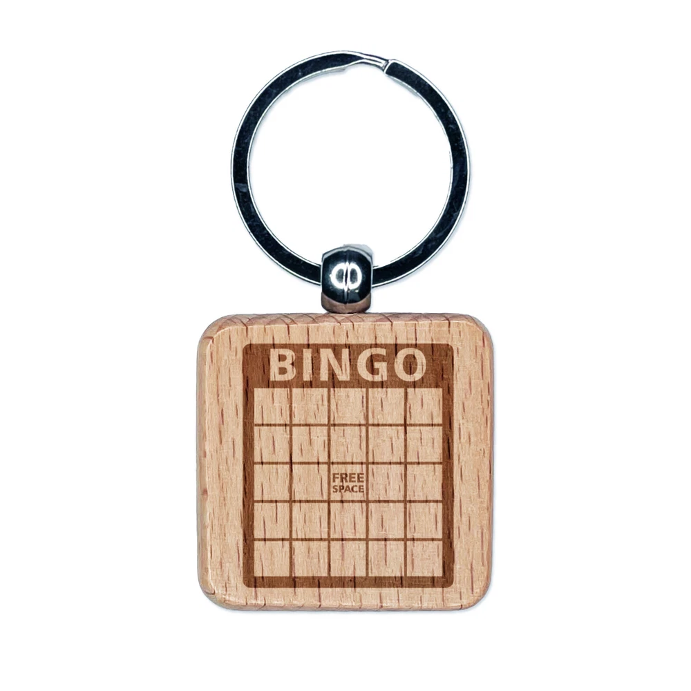 Blank Bingo Card Engraved Wood Square Keychain Tag Charm