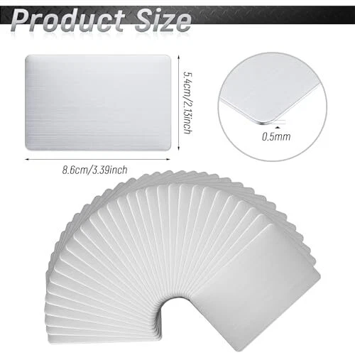 Features: Show your love and care: You can send these blank metal business cards to your classmates, colleagues, clients, neighbors, guests, friends, family members, loved ones, and others, expressing your love and care for them. Assorted places to use: These small business cards can be applied in many places, such as offices, conference rooms, hotels, restaurants, coffee shops, homes, and so on, helping you mark names and others. Specifications: Material: 304 stainless steel Color: as picture shown Size: approx. 86 x 54 mm/ 3.39 x 2.13 inches Thickness: approx. 0.5 mm Package includes: 30 x Blank metal business cards Notes: Manual measurement, please allow slight errors on size. The color may exist slight difference due to different screen displays. Enough to Share with Others: the package will bring you 30 pieces of steel cards in total, classic and cool, very useful in your daily life; An abundant quantity can easily meet your daily application and replacement requirements, you can also share them with others Reliable Workmanship for Lasting Service: made of 304 stainless steel, these blanks metal business cards are solid and hard, not easy to bend, deform, or break under pressure, smooth and flat for you to touch, and can accompany you for a long time Proper Dimension for You to Apply: each steel business card measures approx. 0.5 mm in thickness, thick and firm, easy for you to carve; And it is approx. 86 x 54 mm/ 3.39 x 2.13 inches in size, compact and portable, light in weight, convenient for you to carry around and store in pockets, bags, and more Unfinished Design to Explore DIY Pleasure: the metal card is blank on both sides, you can carve prints, texts, words, and others you want, which are hard to wear; You can also create your own personalized cards, showing your style and taste in this way Versatile Usage: these blank business cards can be made into different items according to different needs, such as gift cards, VIP cards, table cards, labels, business cards, nameplates, and many others, provide you with a lot of convenience