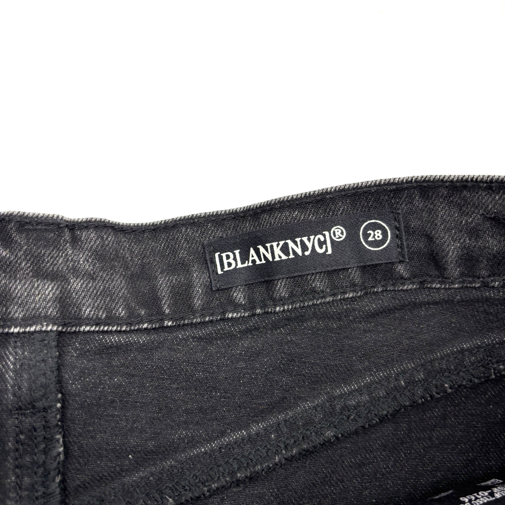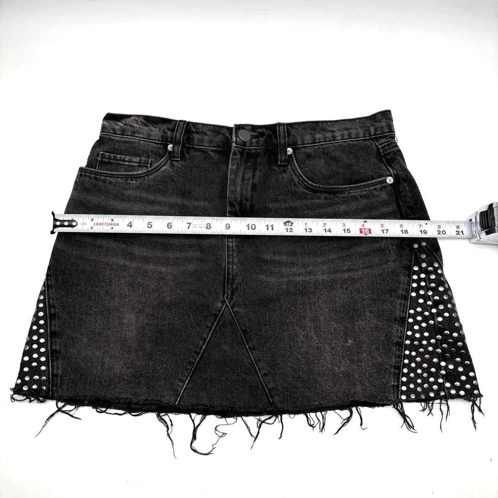 Blank NYC A-line Mini Skirt 74% Cotton, 20% Polyester, 6% Viscose Black Denim Above Knee Length Flat Front A-line Silver-tone Rivet Studs on Sides 5 Pocket Design Zip and Button Closure Unlined Raw Hem No stretch! Women's Size 28 Please refer to measurements below to ensure accurate fit before purchase! 15" waist (30" circumference) 19.5" hips 22" hem 30" full length from waist to hem Measurements made with garment laying flat. Excellent pre owned condition. Very gently owned. No rips, tears, stains, holes or other notable flaws. Clean and from a smoke free home.