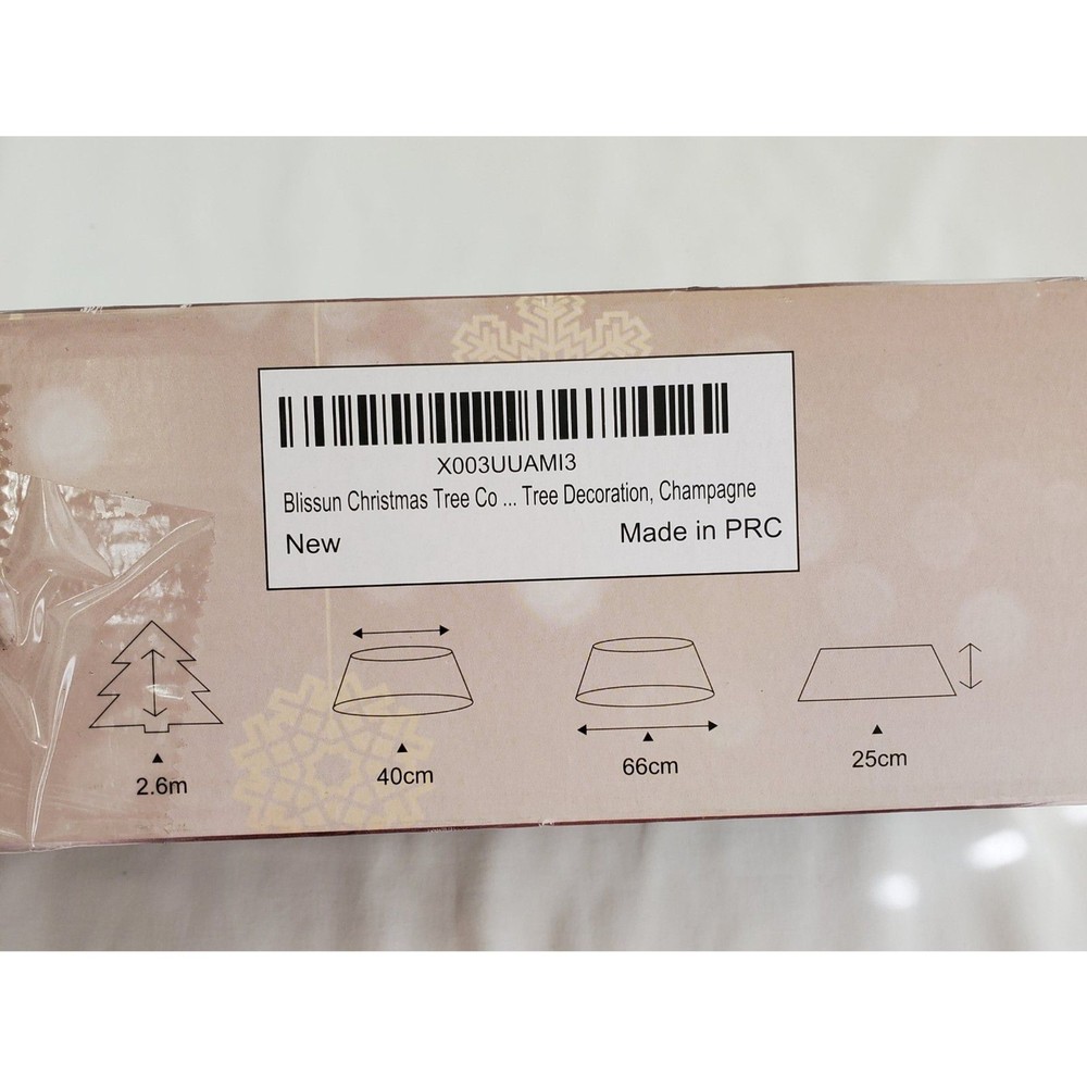 The Blissun Sequin Christmas Tree Collar Skirt in Champagne is a stylish alternative to traditional tree skirts. This foldable fabric ring elegantly conceals the tree trunk and stand, adding a festive touch without the hassle of wrinkles. It's perfect for enhancing your holiday decor while ensuring safety for little ones. **Fast shipping** Sunday through Thursday purchases, processed and on its way to you, next day. ***Make an offer! All offers considered.