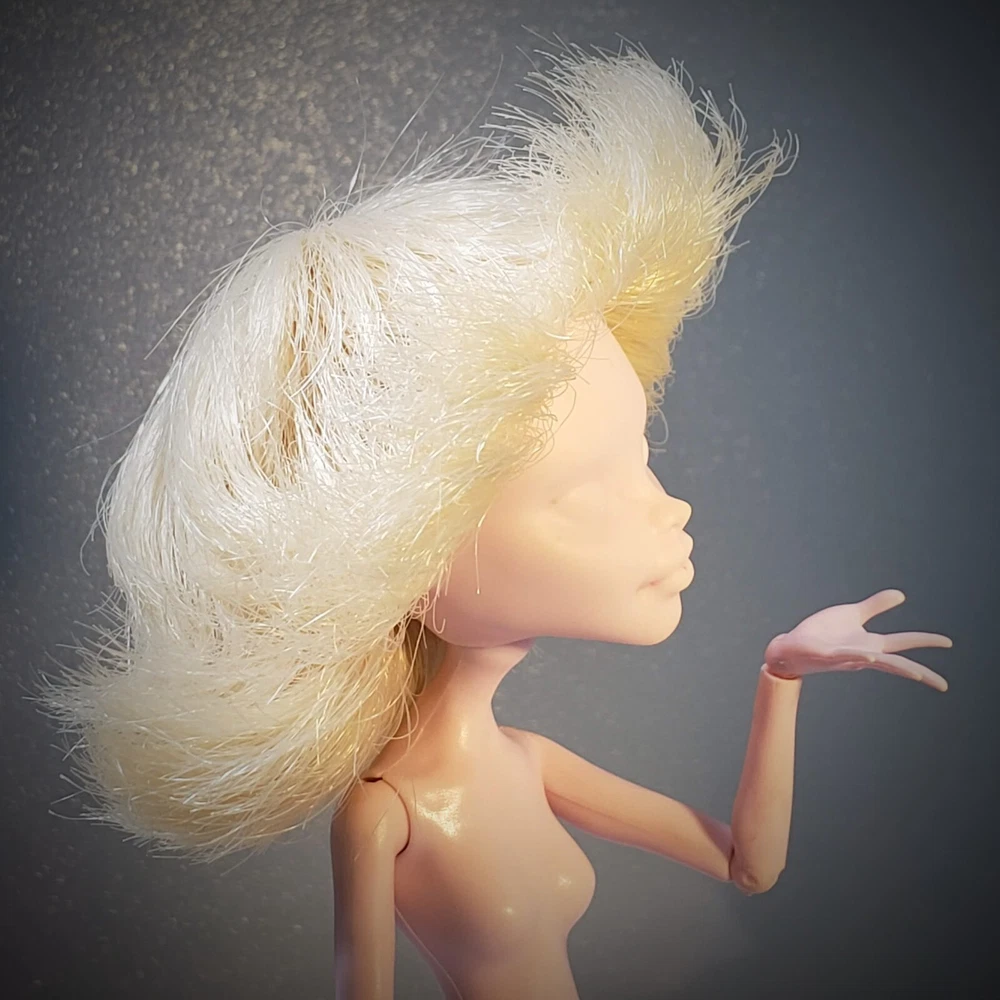 Handmade blond wig for Monster High doll The wig is made on the basis of a non-woven cap and artificial hair strands. We used water-soluble craft glue. It is safe and does not cause allergies. The wig cap fits snugly around the doll's head. Head circumference: 12.5cm Wig Height: 3cm It fits exactly on the figure of the dolls. The doll & accessory are not included. Check my other items if you looking for 1/6-scale doll clothes. Comes from a smoke-free and pet-free home. Don’t hesitate to contact me if you have any questions.