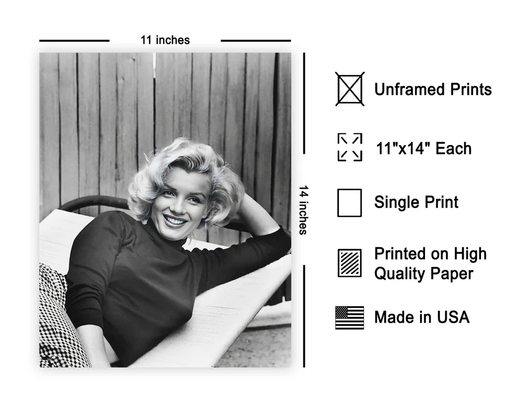 Vintage Photograph Poster - Celebrity Print - 11x14 UNFRAMED Wall Art - Gift for Artist, Friend - Blonde Actress, Symbol, Fashion - Wall Decor for Home, Office ✅UNFRAMED PRINTS: We create all our prints in variation of standard sizes from 8x10 to 24x32 inches. For your convenience, we also offer a variety of frames so you can have them ready-to-hang. ✅QUALITY MATERIAL: Our wall art prints are printed in the USA on fine art matte paper. Our posters can last forever without losing their original quality. ✅AESTHETIC DECORATION: Poster wall decor is a popular and elegant way to decorate a room nowadays, it is a good choice to hang on the wall of your living room, bedroom, kitchen, or dining room. Simple decorations bring infinite art beauty. ✅GIFT FOR EVERYONE: Are you looking for a gift for your friends' housewarming, birthday or other special events? Our wall art prints set will be a good choice for you. The wall art print set is very suitable for everyone's room decoration. ✅UNIQUE COLLECTION: We are carrying thousands of designs in many categories. We are committed to provide new designs regularly to bring more variety for our beloved customers.