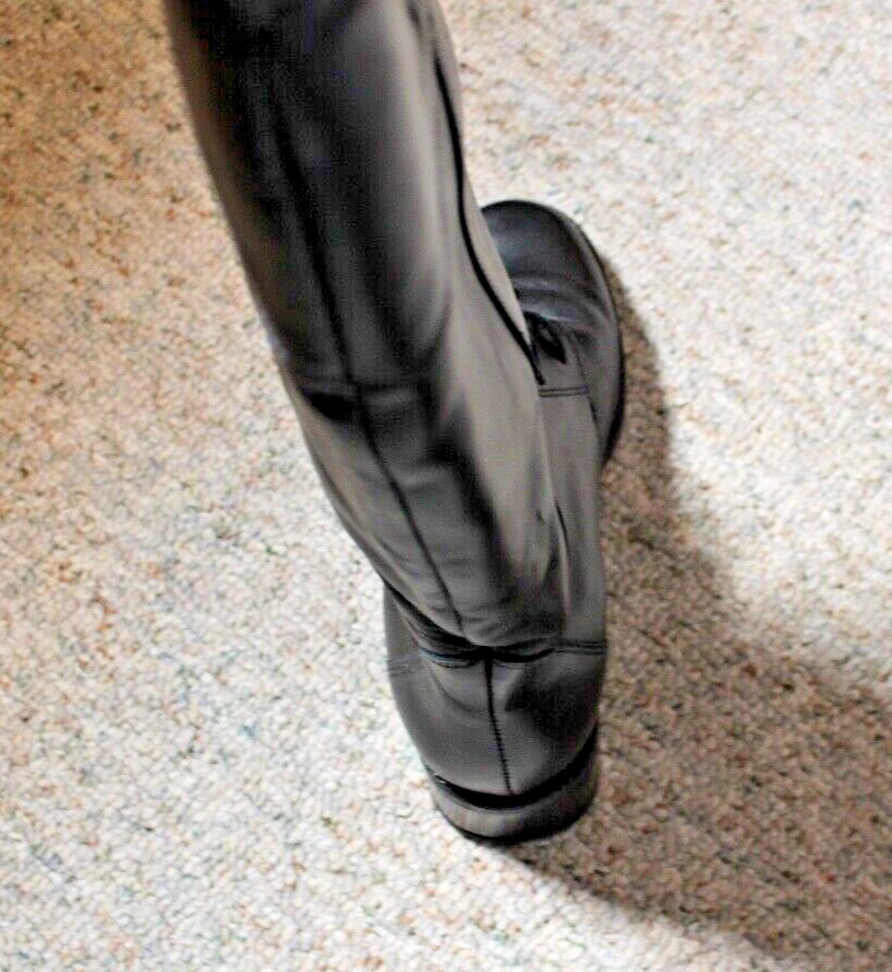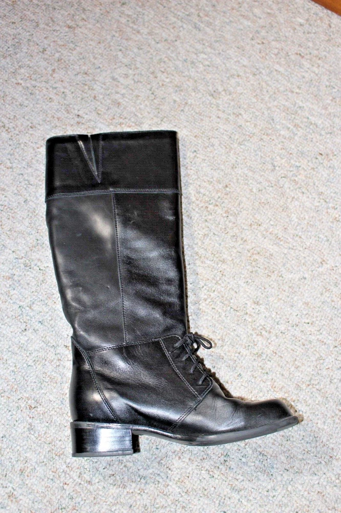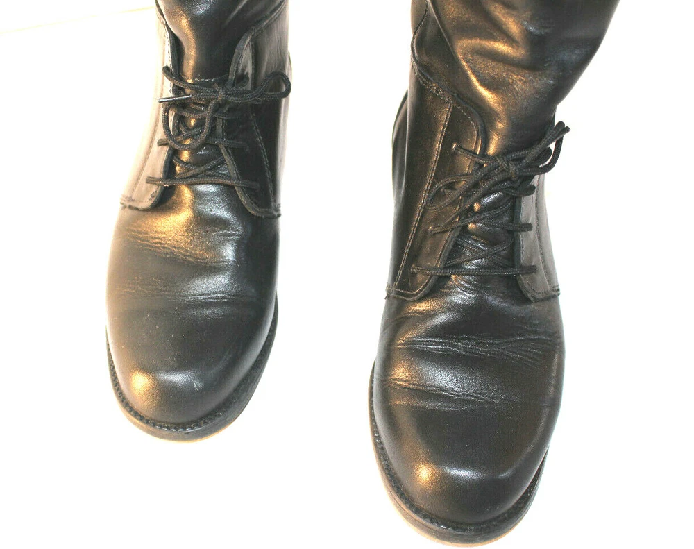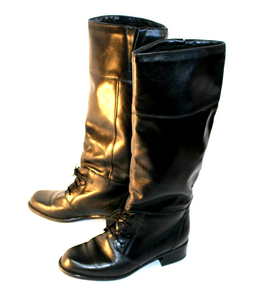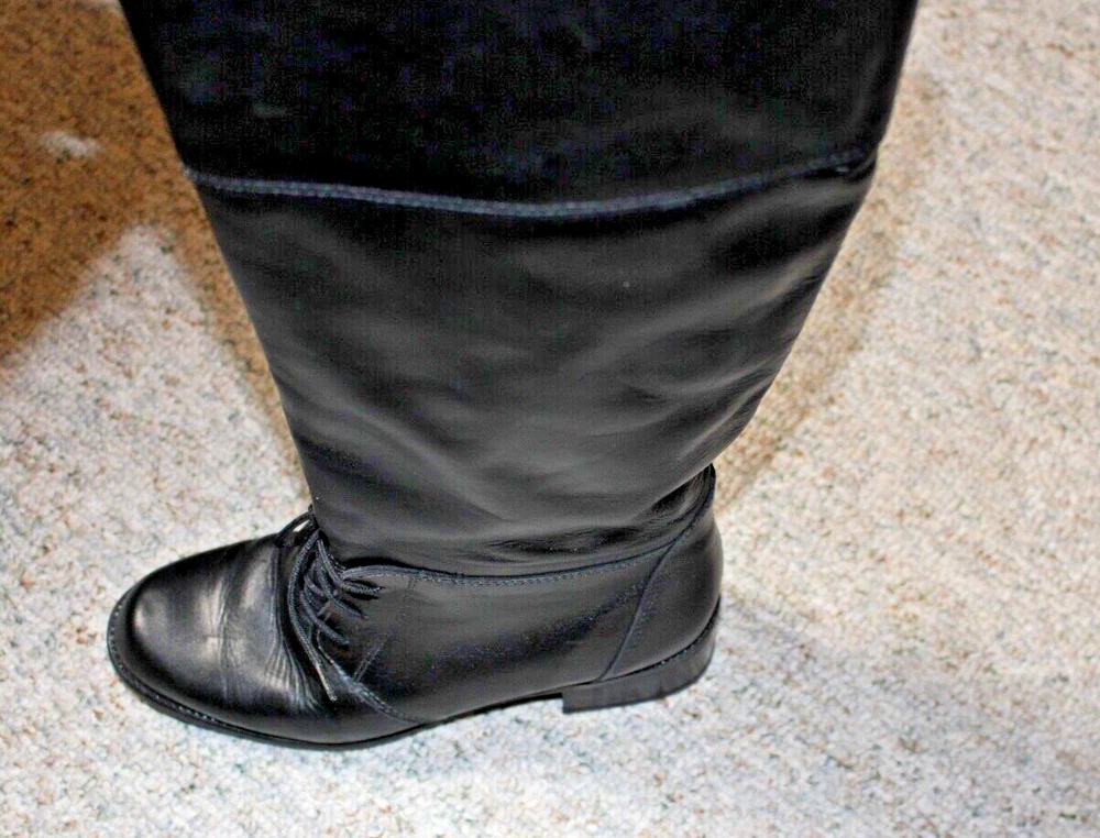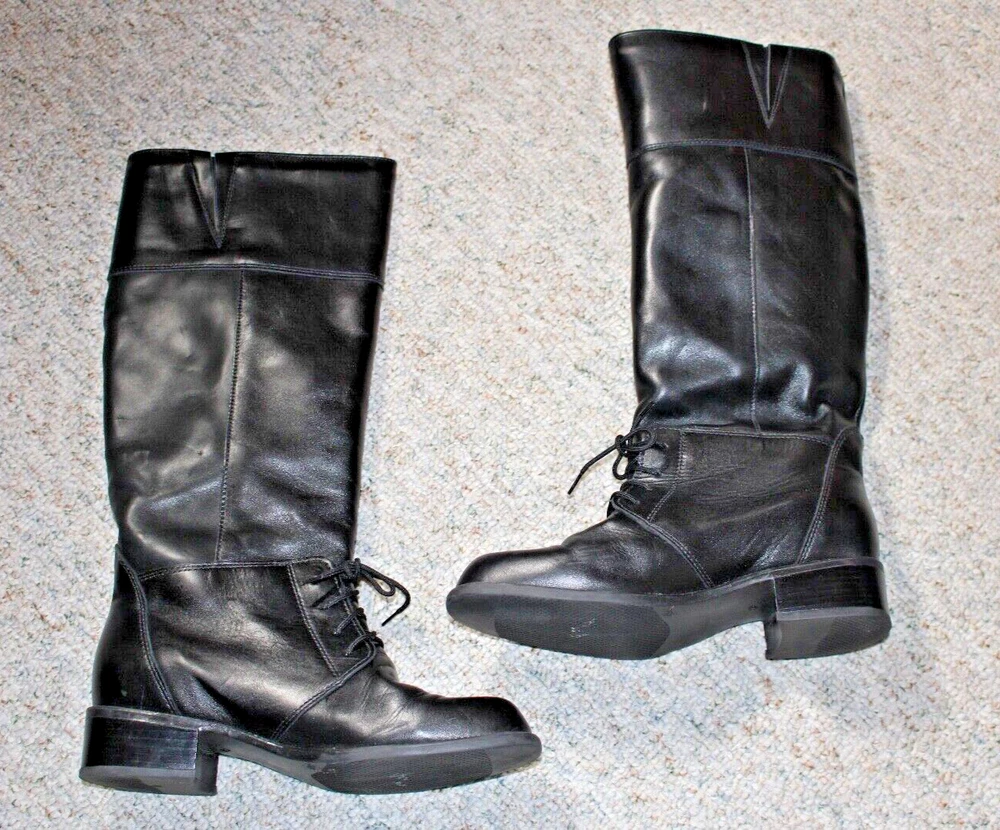 Western Womens Riding Boots Blondo 7 1/2 B Black w Lacing Waterproof...pull on boot with elastic gusset at top of calf, opening is approx 12.5"...height is 16 1/4", widest part of sole is 3 3/8"and 9.75 inches from front to back at wall...very classy style and ready for the equestrian or the woman that likes this style...bottom of boots are stamped 37, label inside of boot says 7.5 B Be sure to see all the New items in the Store...New added daily Thank You!
