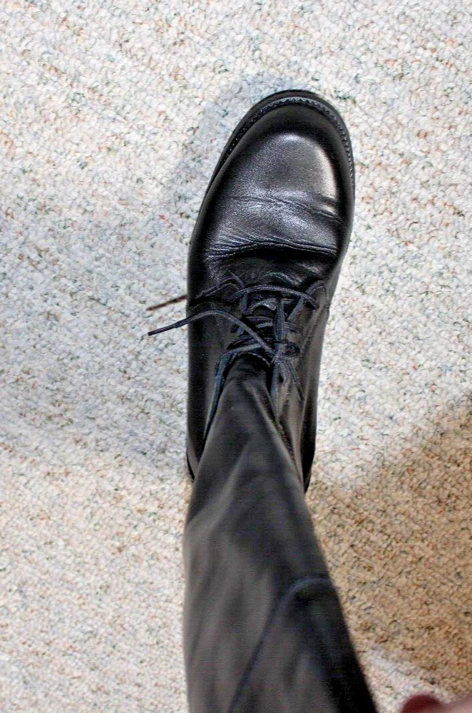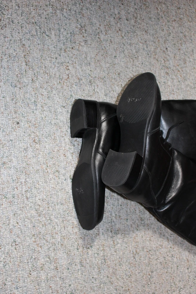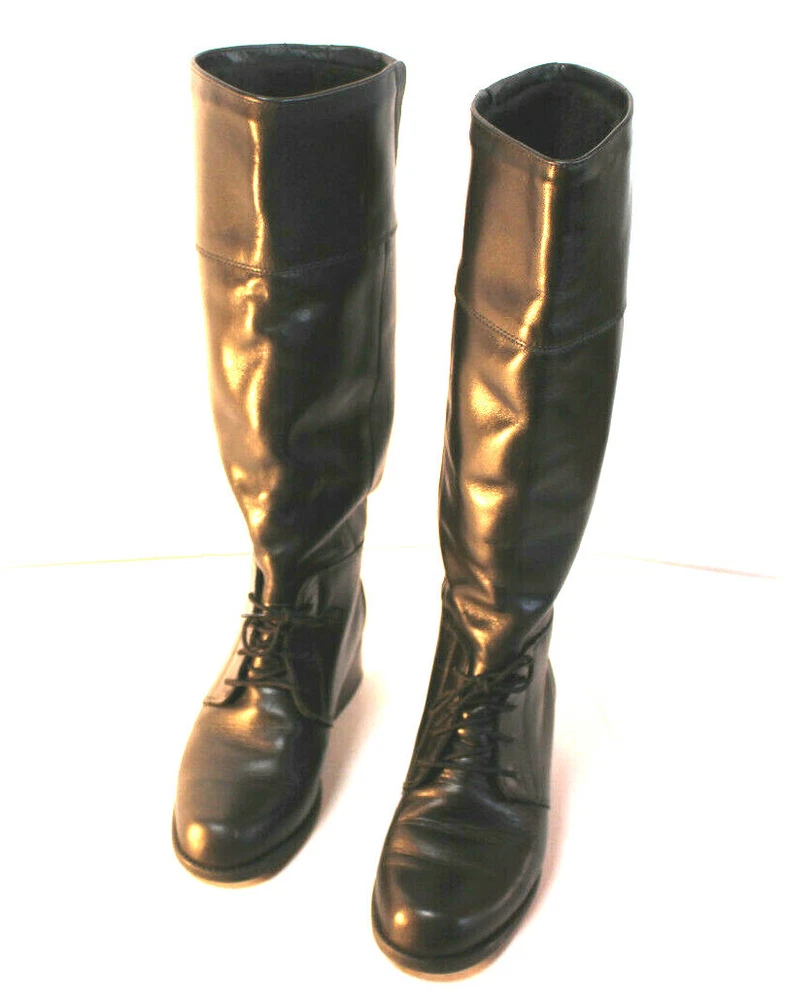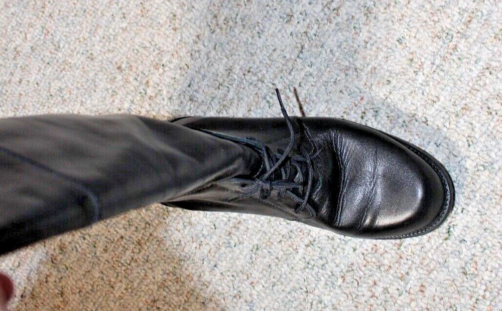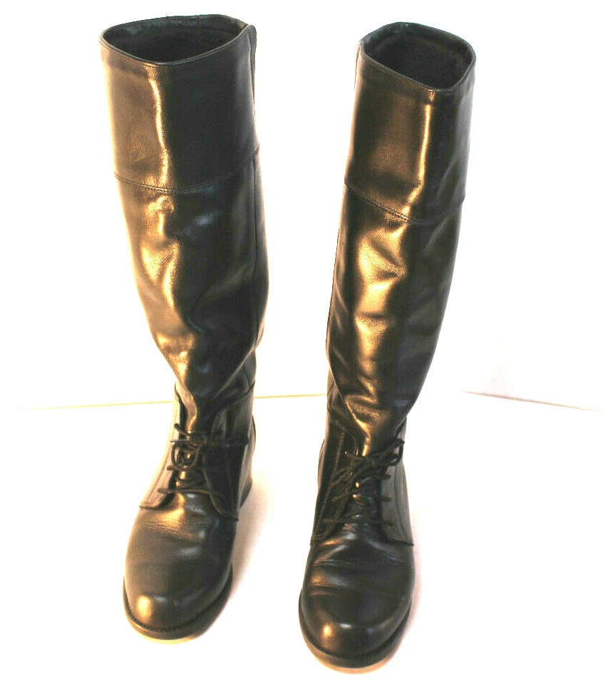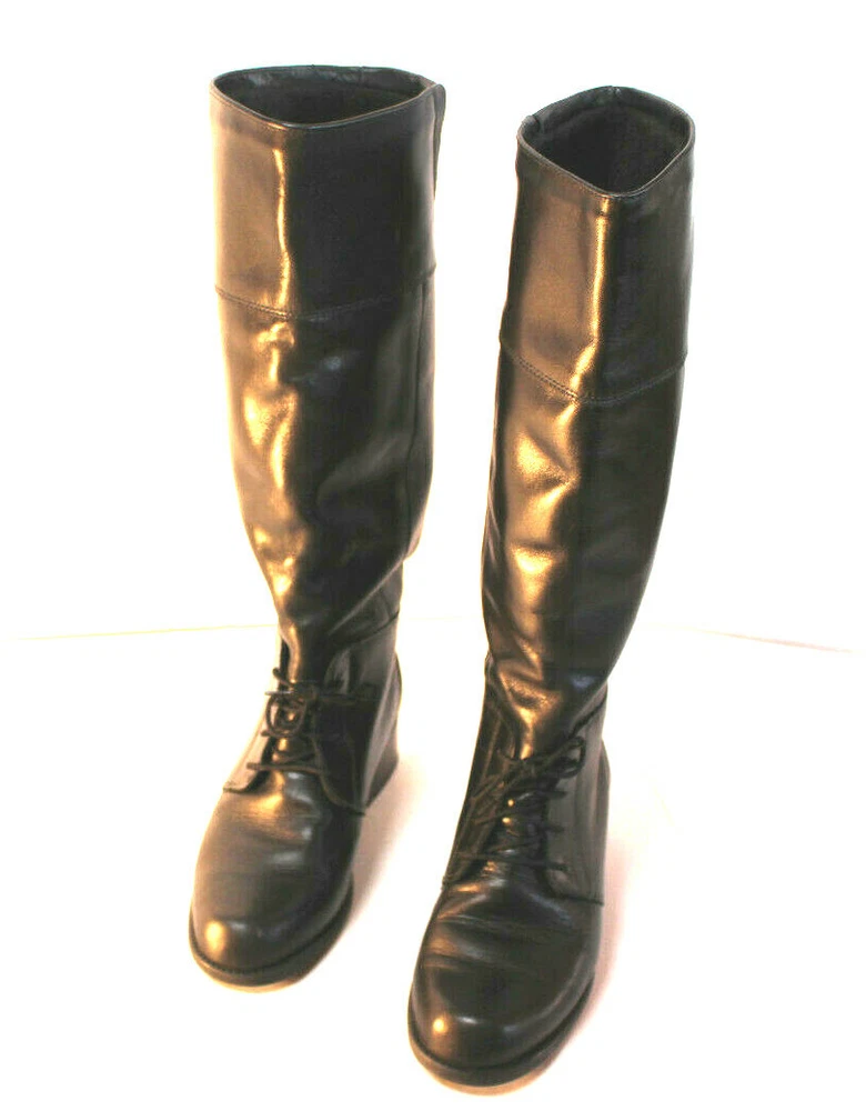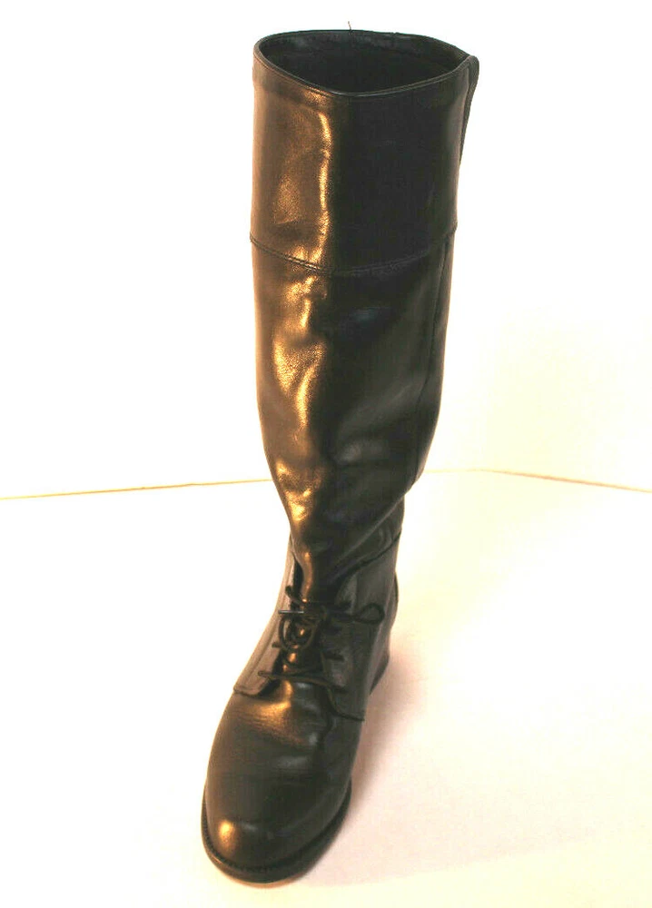 Western Womens Riding Boots Blondo 7 1/2 B Black w Lacing Waterproof...pull on boot with elastic gusset at top of calf, opening is approx 12.5"...height is 16 1/4", widest part of sole is 3 3/8"and 9.75 inches from front to back at wall...very classy style and ready for the equestrian or the woman that likes this style...bottom of boots are stamped 37, label inside of boot says 7.5 B Be sure to see all the New items in the Store...New added daily Thank You!