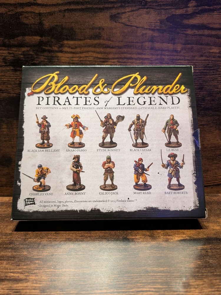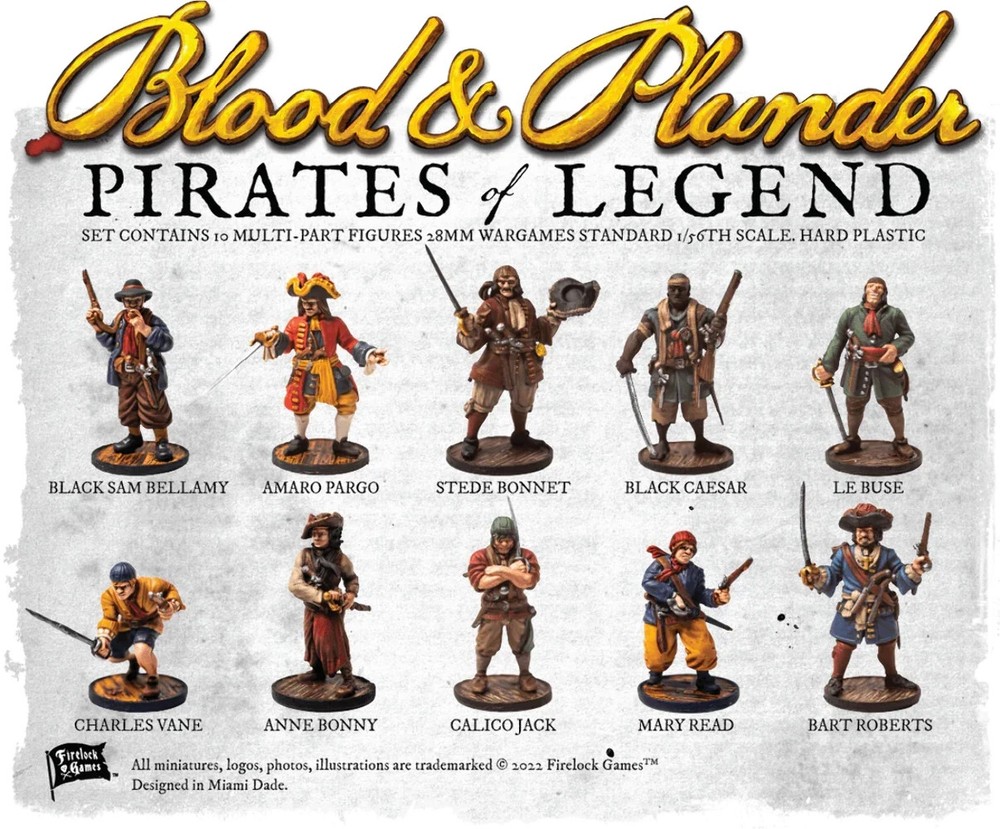 🏴☠️ Blood & Plunder – Pirates of Legend Captains Box | 28mm Hard Plastic Miniatures | Firelock Games Bring the most infamous pirates of the Golden Age to your tabletop with the Pirates of Legend Captains Box for Blood & Plunder by Firelock Games . This boxed set features legendary pirate captains, each sculpted with unique character and perfect for narrative play, skirmish games, or display. As an official stockist , we provide authentic, factory-sealed products direct from the manufacturer. 📦 What’s Included 10 multi-part 28mm hard plastic miniatures Legendary pirate captains and figures, including: Black Sam Bellamy Amaro Pargo Stede Bonnet Black Caesar Le Buse Charles Vane Anne Bonny Calico Jack Mary Read Bartholomew Roberts Compatible with Blood & Plunder and other historical or pirate-themed tabletop games ⚔️ Product Details Scale: 28mm (1/56 scale) Material: Hard plastic Assembly Required: Yes Unpainted: Yes Manufacturer: Firelock Games Game System: Blood & Plunder 🧭 Perfect For Blood & Plunder players Historical wargamers Pirate-themed skirmish games Painters and collectors Narrative and scenario-driven campaigns ⚙️ Preparation Notice Models require washing, cleanup, assembly, and preparation before basing and painting. Customers can refer to the detailed instructions provided in their shipment. It is the responsibility of the consumer to understand they are purchasing a model kit. All models come unassembled, unpainted, and in raw form. 📦 Handling Time All orders are processed and shipped within 1–3 business days , excluding holidays and weekends. ⚠️ Disclaimer Our models are NOT associated with any third-party company outside of their original manufacturer. They can be used as substitute or compatible models in your favorite tabletop wargames. 🏪 Why Buy From Us? We are an official stockist for: Firelock Games Warlord Games Modiphius Entertainment Atomic Mass Games Mantic Games The Army Painter AK Interactive Paints You’re buying genuine products from a trusted, U.S.-based seller who supports the tabletop community. ↩️ Return Policy We offer a 7-day return window . To receive a refund, all items must be returned in their original packaging. Refunds are issued minus a 15% restocking fee once the item is received and inspected. 🔖 Tags / Hashtags #BloodAndPlunder #FirelockGames #PirateMiniatures #HistoricalWargaming #28mmMiniatures #TabletopWargaming #UnpaintedMiniatures #PiratesOfLegend #SkirmishGames #MiniaturePainting