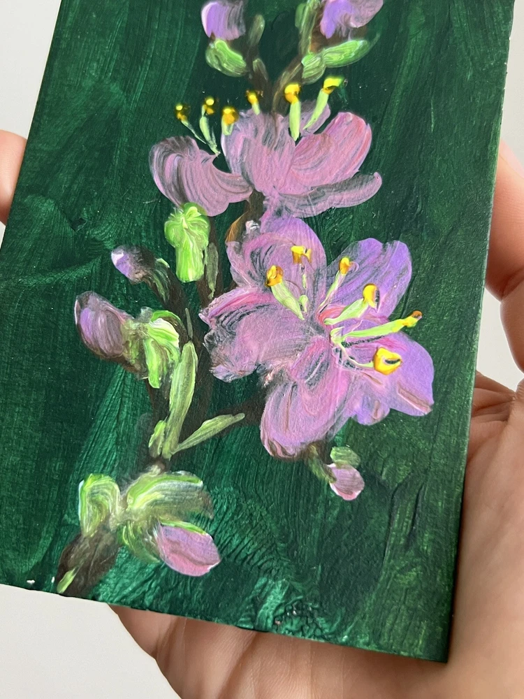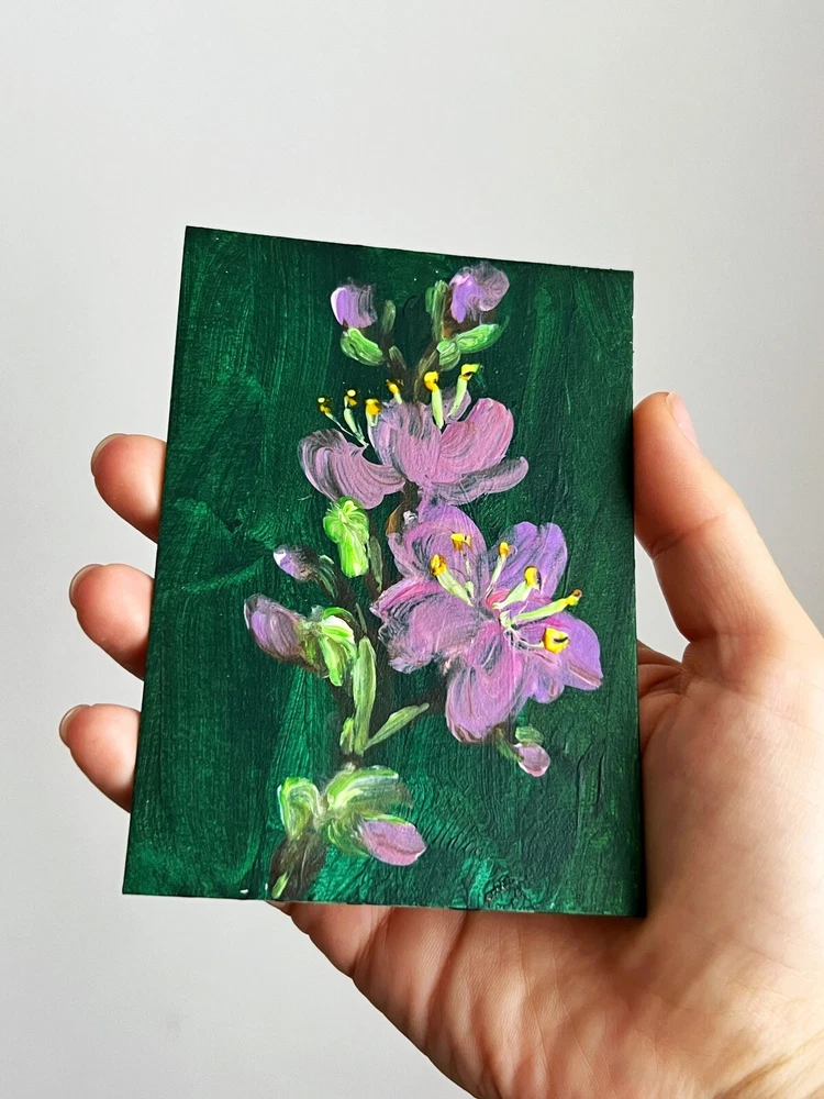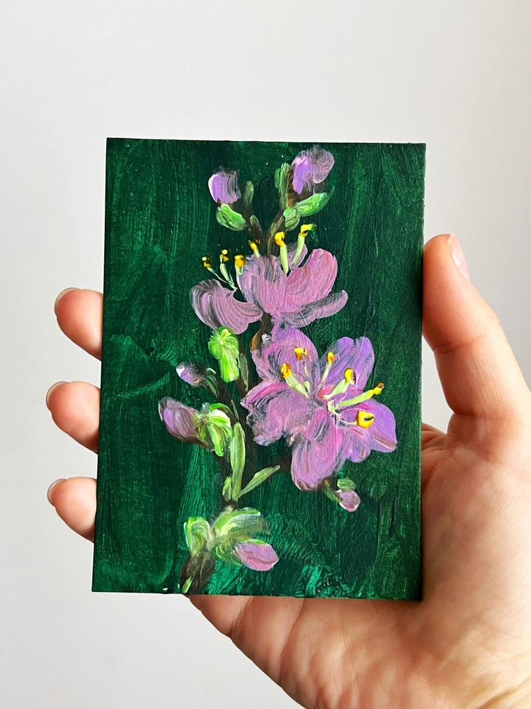 🌿 Cherry tree blossom acrylic painting. 100% hand painted Blooming tree flowers impressionist art. Small floral painting. Original flowers art decor. 🌿 Original author's acrylic painting on thick cardboard . Unframed. Need a decorative frame. 🌿 Size: about ~ 8x10.5 cm / ~ about 3x4 inches 🌷 Signed from the back by Kateryna Oliynyk . 🌿 Materials: professional acrylic paints, cardboard ,. Unframed . Need a decorative frame. Or you can use a small stand / miniature easel.