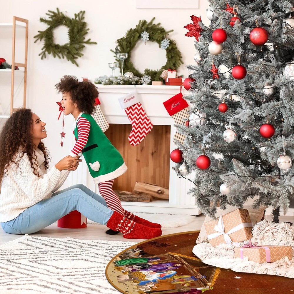 Blosssound Christmas Nativity Tree Skirt 48 Inch Nativity Scene Christmas Tree Mat Jesus Christian Winter Holiday Party Decor Farmhouse Tree Ornaments Xmas Indoor Outdoor Supplies(Brown) Nativity Scene: the theme of our religious tree mat is the birth of Jesus; On the Xmas tree mat there are shepherds, the Virgin Mary, Jesus, king, a wooden house, buffaloes, camels, lambs, etc.; Which showing the scene of Jesus' birth vividly Right Size: measuring 48 inches in diameter, this Christmas tree skirt is the ideal size for most Christmas trees; Just place it around the base of your tree, then put some Christmas decorations on it, and watch as it instantly elevates your holiday decor Quality Materials: our nativity tree skirt is made of polyester, soft and durable, not easy to slide; The patterns are exquisite and clearly printed; Not only does it protect the floors from pine needles and tree sap, but also adds warmth to your home Easy to Use: our Jesus Christmas tree decor adopts rope straps design, which can be firmly fixed by just simply fasten, and it is very convenient to install; Simply make your home merry and bright with this beautiful and festive tree skirt Christmas Decorations: complete your merry Christmas celebrations with this Xmas tree skirt; Whether you're hosting a merry Christmas family party or simply want to create a cozy atmosphere in your home, this tree skirt is sure to impress your guests Features: Creative Christmas decoration: Our Jesus Christian themed Christmas tree skirt is to express our celebration and commemoration of the birth of Jesus, making your Christmas decoration more special, unique and memorable. Good choice for gifts: The Xmas tree decor is beautifully printed and well-made. You can give it to your friends, family, lovers, neighbors, etc. Those who receive this Christmas gift will be very happy and fell your care and love. Specifications: Material: polyester Color: brown Size: 48 inch Package Include: 1 x brown Christmas tree skirt Notes: Manual measurement, there may be slight differences in size. Due to the screen display, the color of the item may differ slightly from the picture. Shipping We offer FREE shipping on all orders! We ship within Three business days of payment, usually sooner. We use a selection of shipping services such as UPS, FedEx, USPS etc. We only ship to the lower 48 states, no APO/FPO addresses or PO Boxes allowed. Local pickups and combined shipping options are not provided at this time. Return You can return a product for up to 30 days from the date you purchased it. Any product you return must be in the same condition you received it and in the original packaging. Please keep the receipt. Payment We accept payment by any of the following methods: PayPal Please pay as soon as possible after winning an auction, as that will allow us to post your item to you sooner! Feedback Customer satisfaction is very important to us. If you have any problem with your order, please contact us and we will do our best to make you satisfied. Contact Us If you have any queries, please contact us via ebay. We usually respond within 24 hours on weekdays. Please visit our eBay store to check out other items for sale! Thank you for shopping at our store.