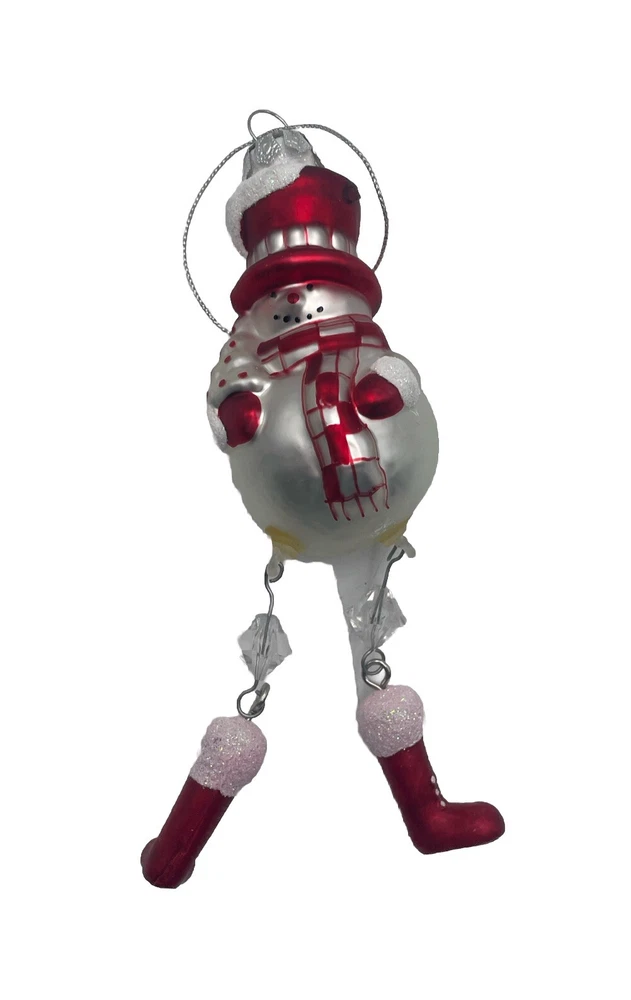 Add a festive touch to your Christmas tree with this Blow Mold Glass Snowman Ornament. Crafted with high-quality glass material, this vintage ornament features a jolly Santa and his dangling legs, perfect for adding a touch of holiday cheer to your home decor. This collectible ornament is a must-have for any ornament enthusiast and is sure to become a treasured addition to your collection. Whether you're looking to decorate your tree or add to your ornament collection, this Blow Mold Glass Snowman Ornament is the perfect choice. Out of box.