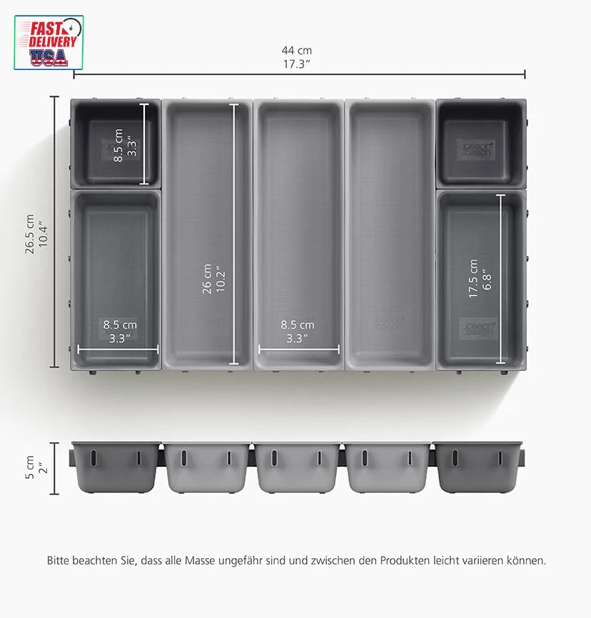 Store New Arrivals Add to Favorite View Feedback Contact Blox 7 Piece Plastic Storage Trays Cosmetics, Stationary, Utensils Drawer Organizer Grey Description Item model number 85199 Style Blox Drawer Capacity 1 Kilograms Number of Items 7 Country of Origin China Warranty Description 1-Year Guarantee Batteries Included? No Batteries Required? No Finish Brushed Product Dimensions 10.43"D x 17.28"W x 1.97"H Material Plastic Package Type FFP Finish Type Brushed Specific Uses For Product Cosmetics,Utensils Included Components 7 x trays; 4 x self-adhesive feet Mounting Type Modular Design Item Weight 1.17 Pounds Item Package Quantity 1 Number Of Pieces 1 Item Weight 1.17 pounds Number of Compartments 7 Unit Count 1.0 Count Special Features Modular and Expandable Special Feature Modular and Expandable Part Number 85199 Color Grey Global Trade Identification Number 05028420003901 Shape Rectangular Size 7 piece Individual compartments clip easily together on all sides Modular design can be customised to fit drawer space Perfect for organizing a wide variety of items such as cutley, utensils, stationery, tools and craft accessories Multiple sets can be joined together for even more storage space Self-adhesive non-slip feet included This modular design comprises seven individual trays of different sizes that are able to be clipped together on all sides, allowing you to arrange them in any order to fit your drawer space - they can even be divided and used in multiple drawers. To change the order, simply unclip each tray and rearrange as necessary. Perfect for organising and storing a wide range of household items such as cutlery, utensils, stationery, tools and craft accessories. The set also comes with self-adhesive, non-slip feet which can be applied once the final arrangement of trays has been decided. Wipe clean with a damp cloth. ABOUT US We offer the best prices around on high quality products. Our E-store includes media such as books, movies, music and games while offering electronics, toys, sporting apparel, clothing, tools, general home, garden items and more. SHIPPING We are always working hard to ensure your package arrives as soon as possible. Please understand that some factors like weather, high postal traffic, and the performance of shipping companies are outside of our control. We offer free shipping to the lower 48 states and ship within 2 business days of payment, usually sooner. We do not accept P.O. Boxes. Please provide a physical address. For shipping outside of the continental USA, we only use eBay's Global Shipping Program.The item is shipped to KY and then sent to the rest of the world. International customers are responsible for all duties and taxes. Continue to check out in order to calculate costs for shipping the item to your country. Messages regarding eBay's Global Shipping Program MUST be directed at eBay EXCLUSIVELY. RETURNS We offer a 30-Day Return Policy on items which you are not completely satisfied with. You have the option for a full-refund or an exchange of the item. No returns are available on items shipped outside of the USA. PAYMENT We accept PayPal. CONTACT US This page content is yet to come Please ad us to your favorite seller and visit again later Thank You CUSTOMER SATISFACTION We try our very best to make sure every customer is completely satisfied. If there's a problem, message us! We're happy to help. WE ACCEPT Copyright © 2021 AutoDS. | All Rights Reserved