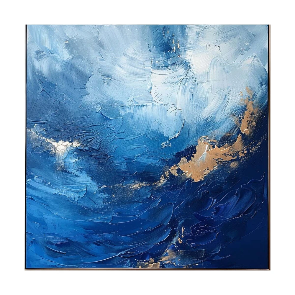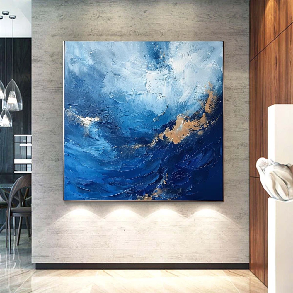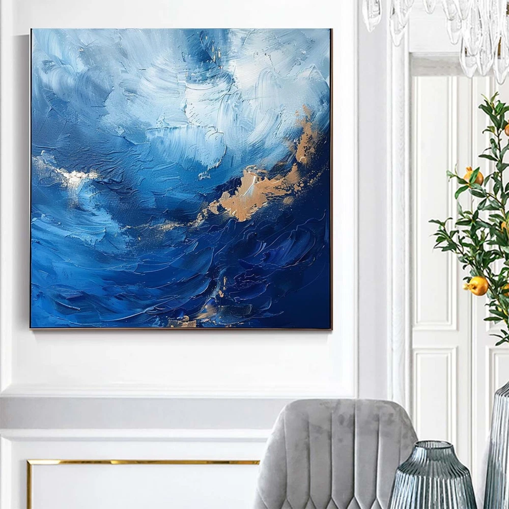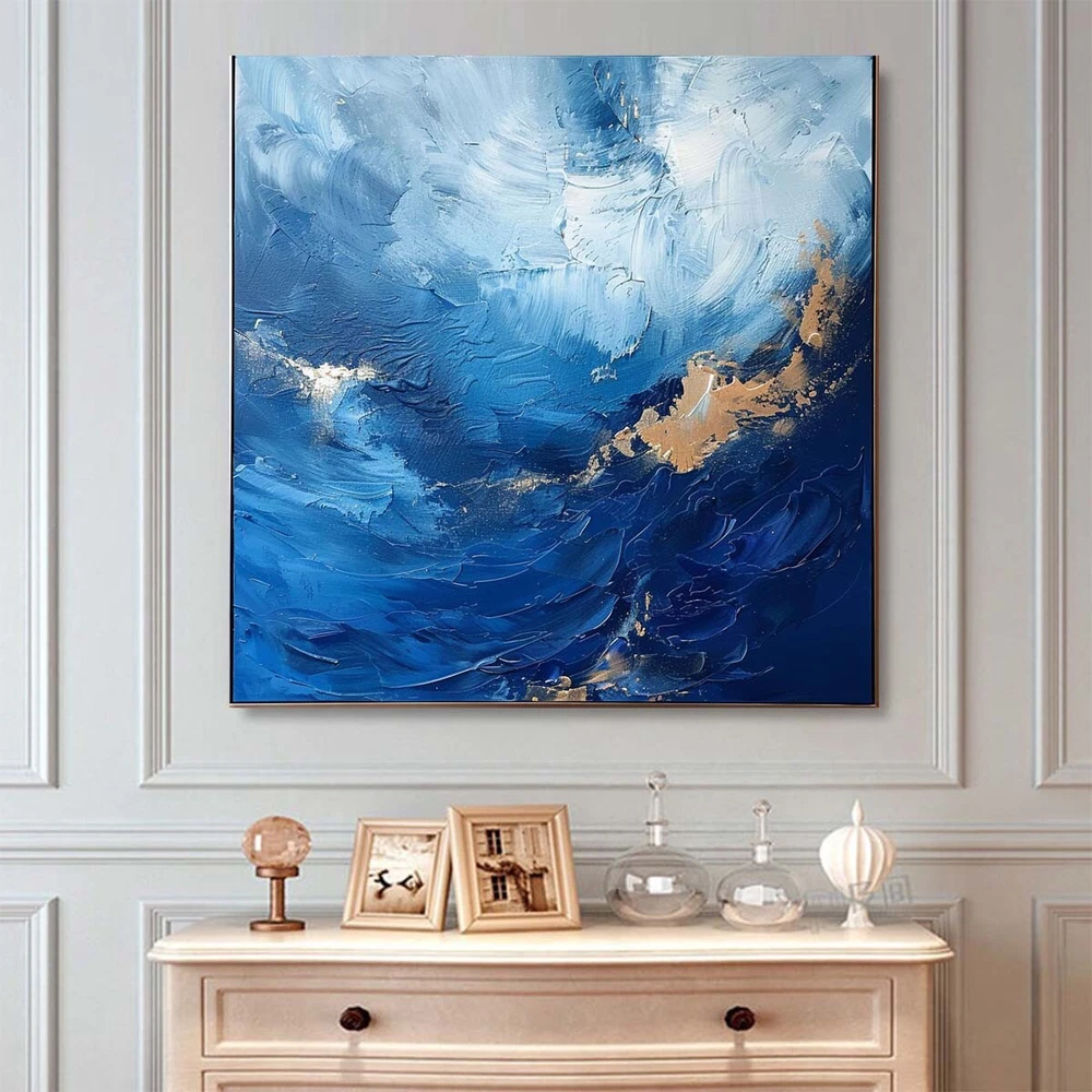 Blue Abstract Wall Art Handmade Oil Painting On Canvas Living Room Home 31in