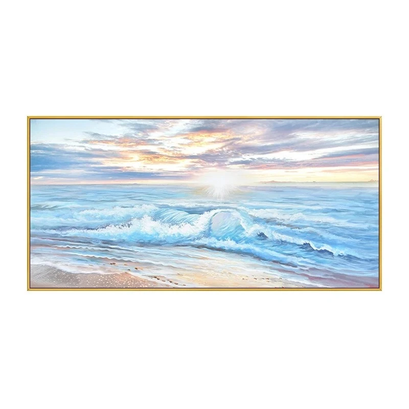 Blue Beach Theme Modern Seascape Hand-painted Oil Painting Artwork Landscape