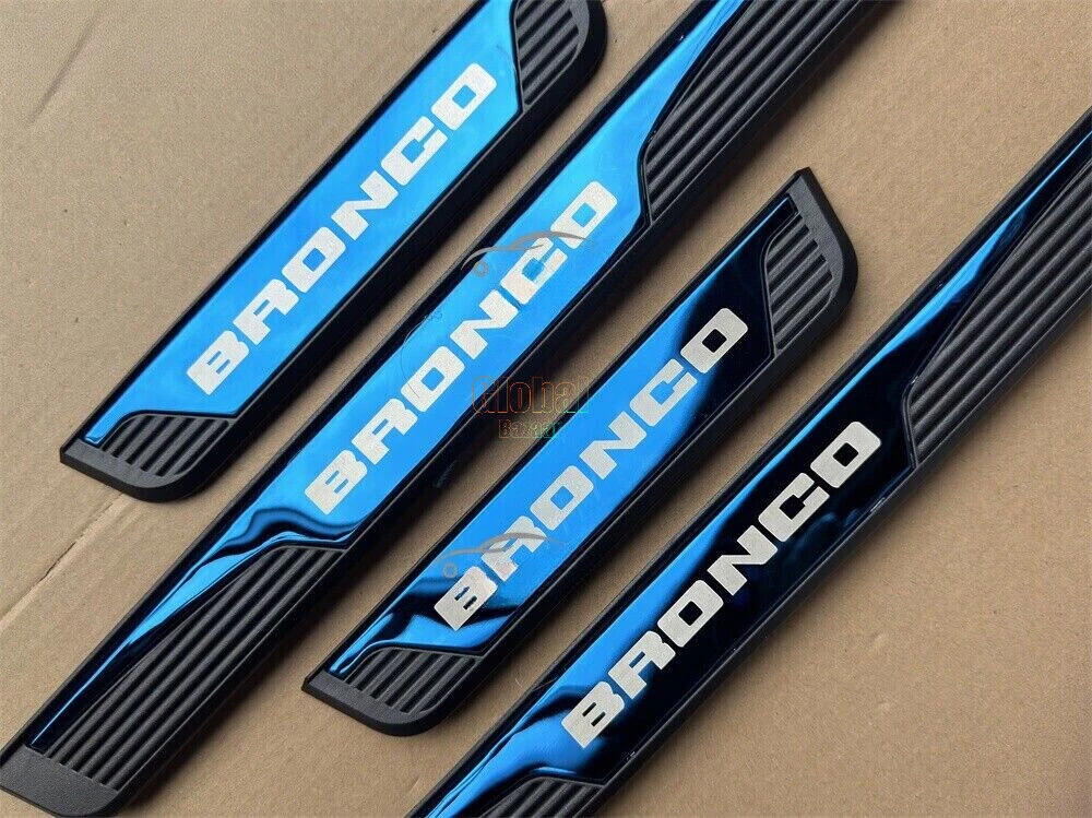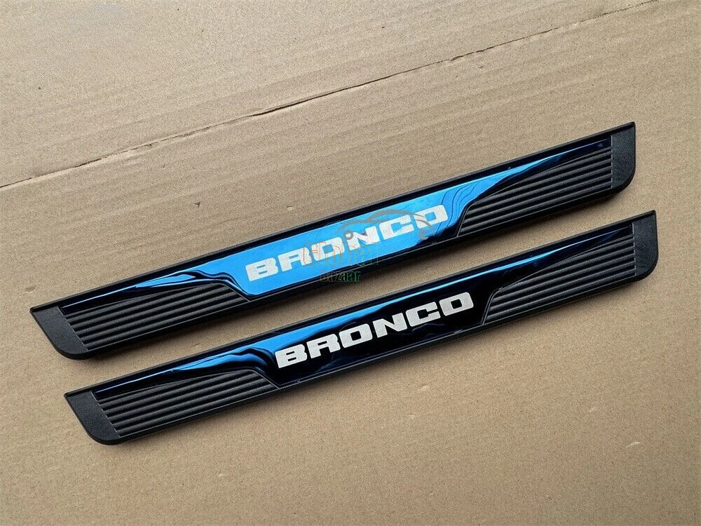 Blue Car Door Sill Scuff Plate Protector Trim For Ford Bronco Accessories Cover