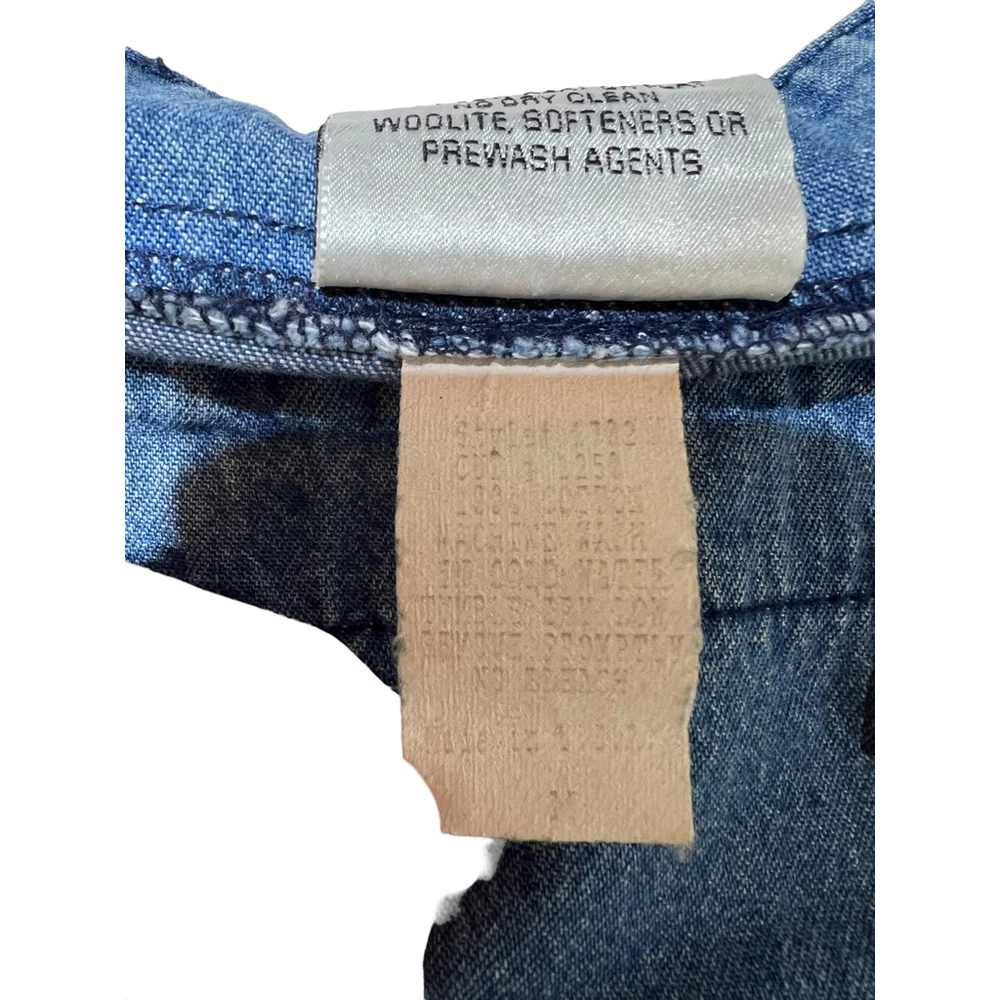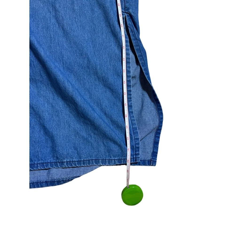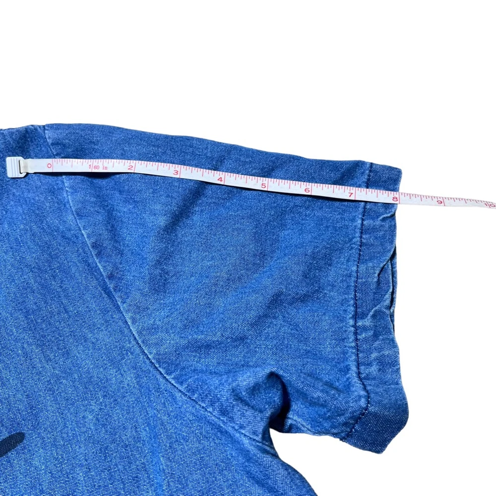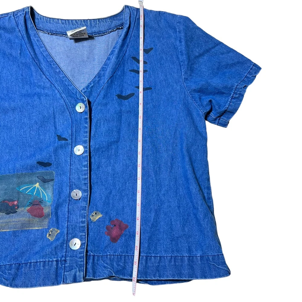 Blue Eyed Bear Denim Dress Set with Short Sleeve Top Womens Medium Chambray 90s Art to Wear Hand Painted Blocked in Naples Florida. Sheath style square neck dress with short sleeve button front top. In good pre-owned condition! No stains, tears or other signs of wear noted. Please see photos for more details and approximate measurements. Sold as pictured. Thanks for looking!