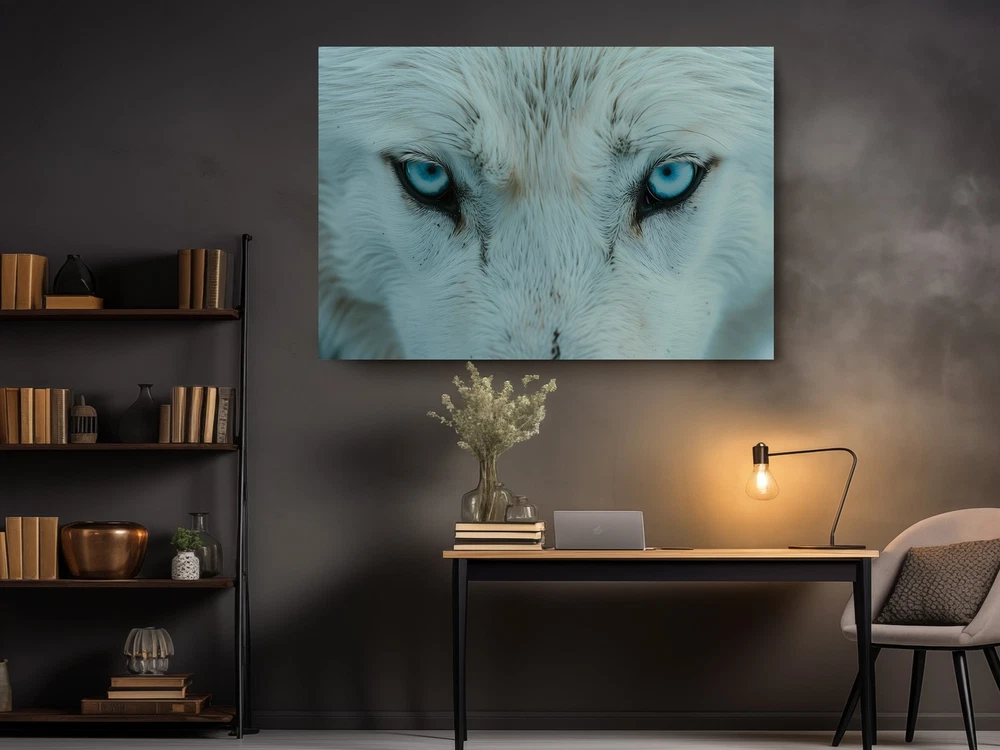 Blue Eyed Wolf on Canvas Print Animal Poster Stylish, Home Decor, Wall Hangings
