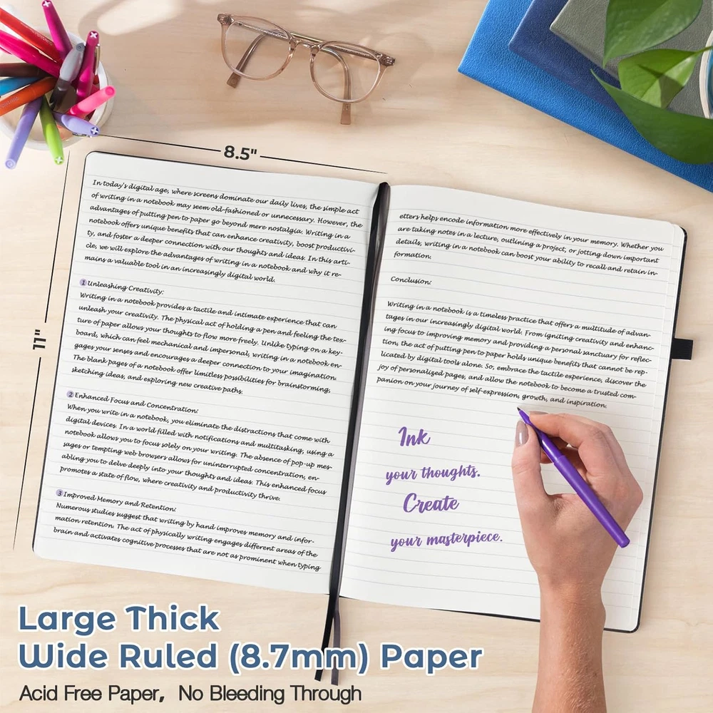 Fast Shipping Great Customer Support Satisfaction Guaranteed DESCRIPTION Shipping Shipping Shipping All domestic packages are shipped for Free (Unless other shipping method was selected during the checkout) Most items ship and arrive much sooner than the estimate delivery date. Usually within 2-3 days from payment. However, we have longer estimates to compensate for the occasional delay or supply chain breakdown. We do not accept P.O. BOXES - PLEASE PROVIDE A PHYSICAL ADDRESS Return Return Return In the event that you would like to return your purchase, we allow returns that are processed within the defined return date (the return date is to be found in the return policy/shipping and handling section) Please contact us for a return authorization and the return shipping address. Payment Payment Payment PayPal is our preferred method of payments it's the quickest, easiest and most secure way to pay for your goods or services online. PayPal offers buyer and seller protection should there be a problem. If you do not have a PayPal account, to get started and buy your first item with us is very easy. Simply click on the 'Buy It Now' button and follow the eBay checkout steps. Select PayPal as the payment method you then will be given the chance to enter your card details in to PayPal's secure checkout in order to pay for your order. Once the payment has been made, you will then be given the opportunity to make your own PayPal account to make paying for your items in the future very easy. Should there be a problem with payment please do let us know. Feedback Feedback Feedback Customer satisfaction is very important to us. If you have any problem with your order,please contact us and we will do our best to make you satisfied, please do not leave a negative feedback before we resolve your problem. We guarantee that your issue will be solved quickly. As long as you are happy with your purchase of , please leave us a positive feedback. Your feedback is very important to us it affects our search placement on eBay. We will leave a positive feedback for you in return automatically once we receive your feedback. Contact Us Contact Us Contact Us If you have any queries, please contact us via ebay. We usually respond within 24 hours on weekdays. Thank you for visiting our ebay store! Luxurious PU Leather Journal: Premium leatherette hardcover journal offers a blend of sophistication and durability. The stunning texture gives the journal an upscale look and feel and offer exceptional value. Generous A4 Journal Notebook: Spacious 8.5 x 11 size of the large journal provides plenty of room to jot down notes, brainstorm ideas, or sketch diagrams, making it a valuable tool for school and work-related tasks. Thick Paper Notebook: Thick journal boasts top-tier 192 acid free pages to create a smooth writing experience. This superior quality paper prevents any ink bleed-through, ensuring every note, sketch, or idea remains pristine and undisturbed on the both sides. Optimized Wide Ruled Notebook Journal: With the ideal college-ruled line spacing, lined journal accommodates detailed and organized writing to enhance productivity for students, professionals, or anyone in need of a neat writing space. Thoughtful Design: Elastic band for closure. Elastic pen loop for different sizes pens. 2 Colored ribbon bookmarks for quick reference. 1 front paper pocket and 1 back expandable pocket for bills, stickers, notes, index tabs. 2 Labels for classification and archive. Innovative Lay Flat Notebook: Featuring 180°lay-flat design, leather bound journal provides a seamless and comfortable writing experience. Whether you're at the start, middle, or end of the journal, every page offers a smooth, easily accessible surface. Targeted for Upscale Gifting: Aesthetic journal is a perfect gift for students, executives, writers, and anyone who appreciates the finer details. Suitable for school supplies and office supplies, such as graduations, birthdays, Christmas, making it an attractive and valuable writing gifts. Blue Hardcover Lined Journal Notebook 8.5"x11" Wide Ruled 192 Thick Pages Click here to see description Fast Shipping Great Customer Support Satisfaction Guaranteed DESCRIPTION Shipping All domestic packages are shipped for Free (Unless other shipping method was selected during the checkout) We ship within two business days of payment, usually sooner Standard FREE shipping takes between 3-5 business days Expedited shipping takes between 2-3 business days Overnight shipping takes between 1-2 business days We do not accept P.O. BOXES - PLEASE PROVIDE A PHYSICAL ADDRESS We Ship Globally using ebay's GSP, the item is sent to a logistic center in KY and shipped from there to the rest of the world. International customers are responsible for all duties and taxes Contact your local authority for questions related to the amount of duties or taxes you will be responsible for Return In the event that you would like to return your purchase, we allow returns that are processed within the defined return date (the return date is to be found in the return policy/shipping and handling section) Please contact us for a return authorization and the return shipping address. Please contact us for a Return Merchandise Authorization (RMA) number. We advise you to use a reputable carrier service when returning your goods. Please pack all returns appropriately. We ship globally Via eBay's global shipping program (GSP). Thus we don't cover returns for items shipped globally. Buyers returning such items will be refunded ONLY for the item's cost and not for the shipping. please check the Voltage information and make sure it matches the one in your country. In case it's not stated in the description, do ask us. Payment PayPal is our preferred method of payments it's the quickest, easiest and most secure way to pay for your goods or services online. PayPal offers buyer and seller protection should there be a problem. If you do not have a PayPal account,