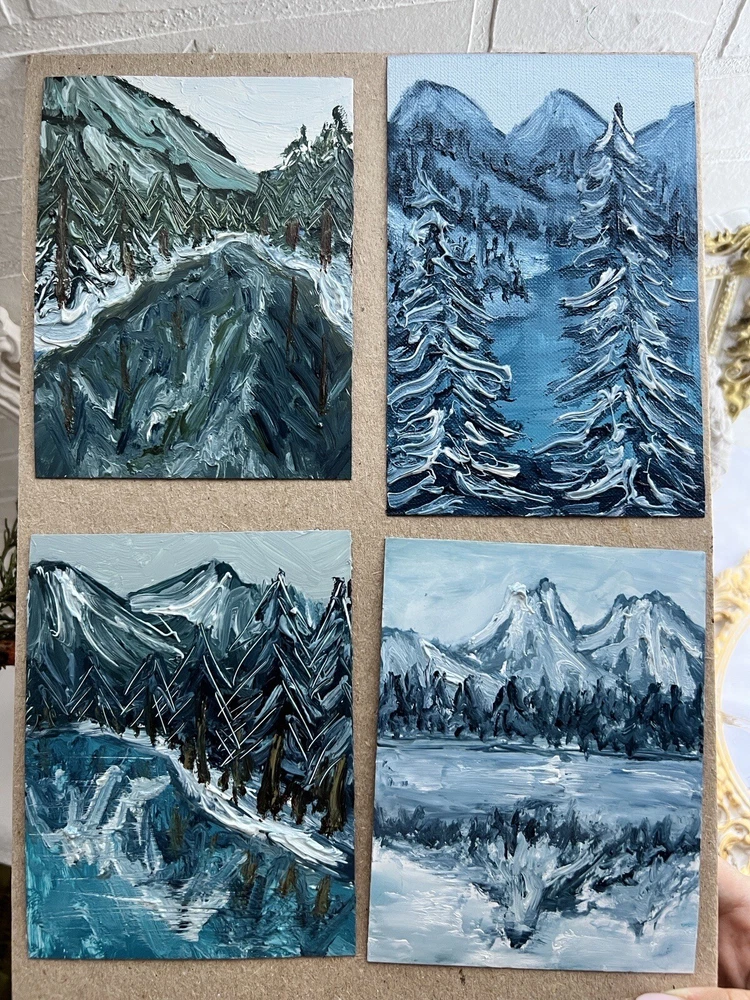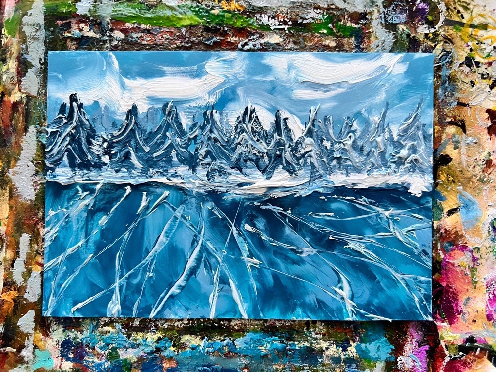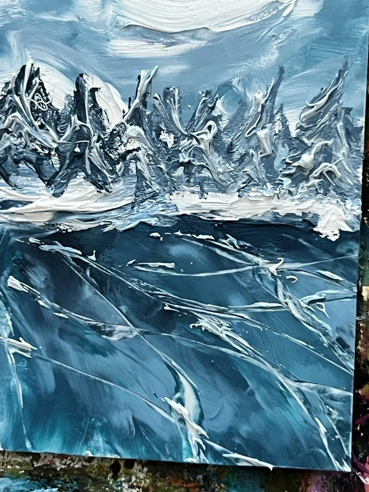 ๐ฟ Amazing moody winter landscape oil painting. Blue toning icy lake view artwork for living room decor. Winter lake coastline wall art for bedroom. Frozen skating pond painting. Art gift for traveller. One of a kind miniature oil art from Ukrainian artist. ๐ฟ The best original and unique gift for friends and family. ๐ฟ This painting is a hand-painted original painting of fine art. Itโs unique and one of a kind. The texture can be seen in close-up photos. ๐ฟ Original Impressionist oil painting from Ukrainian artist Kateryna Oliynyk. ๐ฟ 10x13 cm / 4x5 inch oil on cardboard. Unframed. ๐ฟ Need a decorative frame. ๐ฟ This is not an illustration, not a poster, not a print. All my works in the store are original. ๐ฟ I use different painting techniques for my paintings: brush, palette knife, my own fingers. Each painting is unique and filled with love. I am inspired by nature and convey all my impressions and emotions through colors. Painting is an important part of my life, it fills me, charges me with energy and positive emotions. Iโm sure you will definitely feel this pure and bright energy from my paintings. โค๏ธ IMPORTANT DETAILS: ๐ฟ The frame is not included. The picture is not framed! The photo shows an example of the design , but the frame is not included. ๐ฟ Please note that the colors shown may vary, but I guarantee that the colors will be bright. DELIVERY: ๐ฟ The painting will be carefully packed with gift wrap. I will do everything necessary to ensure that the painting is delivered in perfect condition. ๐ฟ As soon as your item is shipped, you will receive an email from me via Etsy with the tracking number. ๐ฟ I am always in touch with you and are responsible for the delivery of your works. You can always contact me in private messages to resolve any questions. ๐ฟ I always try to send orders as quickly as possible, but sometimes it takes time to dry the oil paint. Please specify the details and delivery time if you need a picture by a certain date. We can also arrange an express shipment for your paintings. โค๏ธ Thank you for supporting my art! โค๏ธ