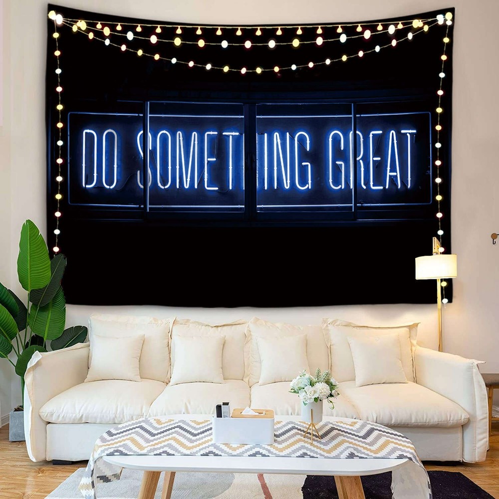 Blue Motivational Do Something Great Tapestry Y2K Aesthetic Dorm Decor
