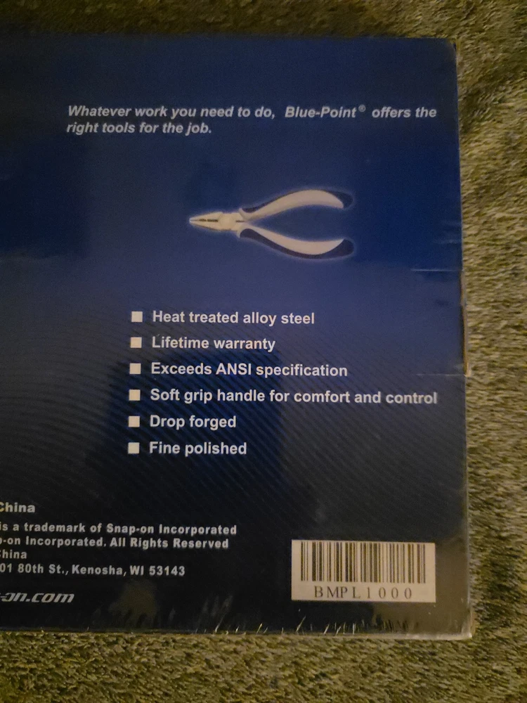 The Blue Point 10 pc Mini Pliers & Cutters Set BMPL1000, sold by Snap-On, is a set of mini pliers manufactured by Blue Point. This set includes a variety of mini pliers and cutters, making it a versatile addition to any garage or workshop. With the reliability and quality associated with the Snap-On brand, this set is designed to meet the needs of professionals and DIY enthusiasts alike.