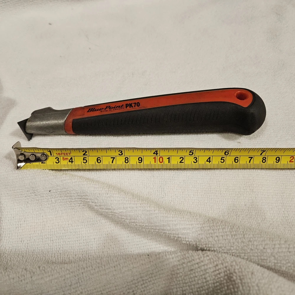 This Blue Point PK70 Scraper is a high-quality tool made in Sweden that is perfect for automotive use. The tungsten carbide blade ensures durability and longevity, making it a reliable choice for professionals and DIY enthusiasts alike. Designed to fit a wide range of vehicles, including GM, Ford, Ram, and Toyota models, this scraper is a versatile addition to any toolbox. With its sturdy construction and ergonomic design, it allows for easy and efficient scraping of surfaces. Whether you're working on brakes, fuel lines, or other automotive components, this Blue Point PK70 Scraper is the perfect tool for the job.
