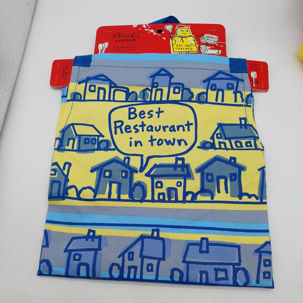 Blue Q Apron "Best Restaurant in Town " Blue Yellow READ