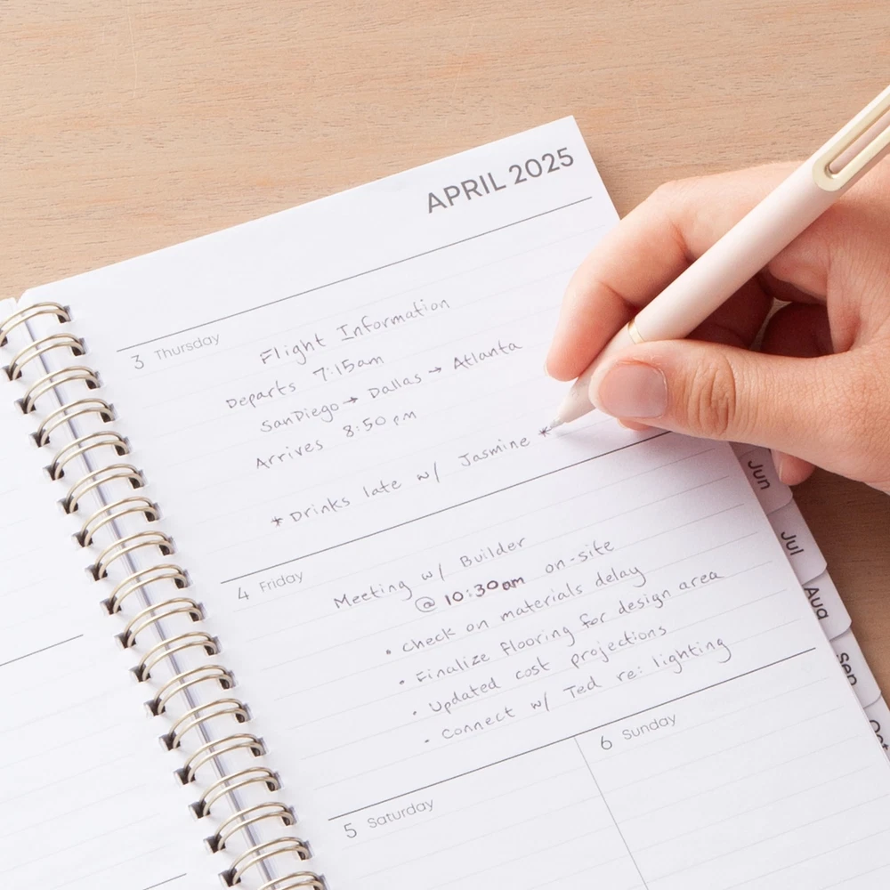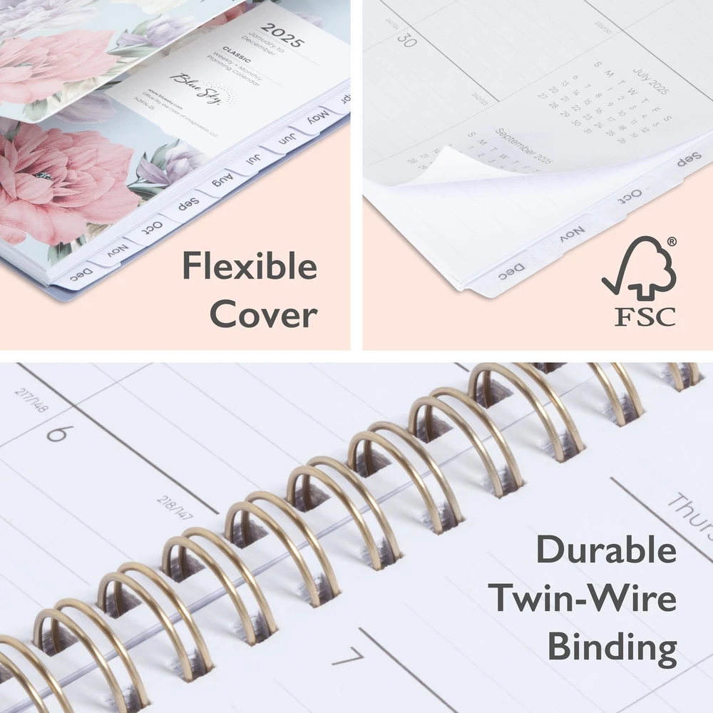 Blue Sky 2025 Weekly and Monthly Planner Calendar, January 2025 - December 2025, 5" x 8", Flexible Matte Cover, Laminated Tabs, Wirebound, Storage Pocket, Tula (Tula- 2025, 5" x 8") Plan your year in style with the chic design and trendy colors of the 2025 calendar year Classic collection. This stylish weekly and monthly planner will keep you organized everywhere you go. Simple page designs add a touch of sophistication and offer plenty of room for all of your important information. Designed with practicality and ease of use in mind, this professional agenda's monthly calendar tabs allow for easy access to each month’s plans while weekly views offer ample writing space for detailing each day. FSC-certified paper is sourced from responsibly managed forests and provides clean writing space for jotting down your appointments, to-dos and reminders. Use this dated planner to keep track of your appointments, and to write down notes and ideas in one place. Durable coated tabbed dividers are long lasting and make accessing information a breeze. Premium quality covers and twin-wire binding provide reliable durability for daily use. Stay on track throughout the year with this portable 5” x 8” planner dated January 2025 - December 2025. Mix and match with other Classic Collection planning products from Blue Sky to organize your daily life. Blue Sky creates modern and sophisticated organizational planners and calendars to fit the scheduling needs of busy people - whether it’s for business professionals, college students, teachers, or anyone with appointments to make note of. Keep your life organized with our full line of products including desk pad calendars, wirebound tabbed weekly and monthly planners with contacts and notes pages to accommodate your scheduling needs, and laminated two-sided wall calendars, all in a variety of colors and patterns to suit your lifestyle and personality. January 2025 - December 2025 chic day planner with 12 months of monthly and weekly pages for easy year-round planning; 6 additional monthly pages (July 2024 - December 2024) are included Monthly view pages contain previous and next month reference calendars for long-term planning, and a notes section for important projects; Major holidays listed, elapsed and remaining days noted Weekly view pages offer ample lined writing space for more detailed planning, allowing you to keep track of your appointments, reminders, ideas and to-do lists every day of the week Yearly calendar planner includes a convenient list of holidays, reference calendars, contacts pages and extra notes pages to accommodate your scheduling needs Printed on FSC-certified paper for clean writing space, with premium quality covers in rich colors and durable, coated tabs that withstand constant use throughout the year Shipping from the USA All of our products are shipped from the USA, ensuring quick delivery to your destination. Payment We offer the following payment methods: PayPal, credit card, bank transfer, and eBay's secure payment system. Free Shipping & Free Returns Shipping within the USA is FREE. Additionally, any return is absolutely free for you. Risk-Free Purchase You have the option to return an item within 30 days without any justification. We cover the return shipping costs! Fast Shipping We ship immediately upon receipt of payment. Generally, the package is delivered within 2-3 days in the USA. If it takes longer, we will contact you. Quality and Costs Made in Europe, USA, China No customs fees or additional charges Total satisfaction guarantee Invoice with declared VAT available upon request in .pdf format Feedback Your feedback is very important to us. After you pay for your purchase, you will automatically receive positive feedback from us.