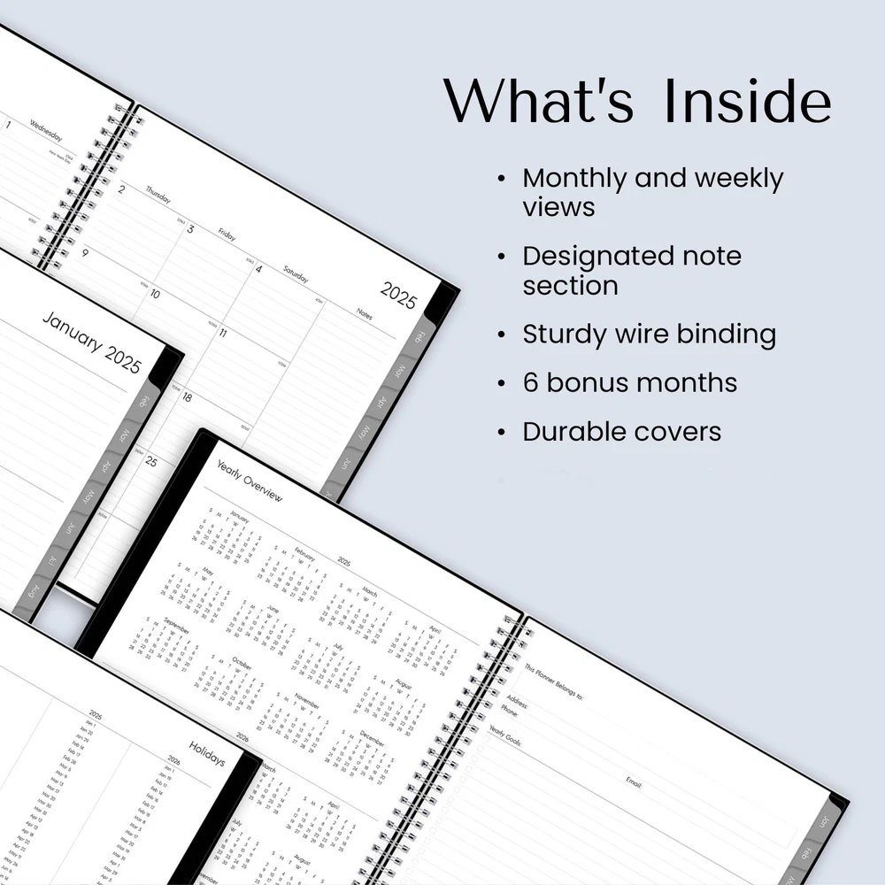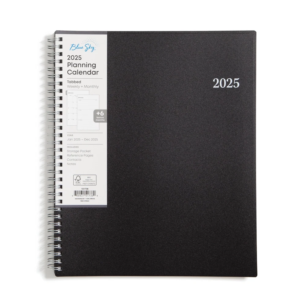 2025 Weekly and Monthly Planner Calendar, January - December, 8.5" x 11", Flexible Cover, Laminated Tabs, Wirebound, Storage Pocket, Enterprise January 2025 - December 2025 stylish day planner with 12 months of monthly and weekly pages for easy year-round planning; 6 additional monthly pages (July 2024 - December 2024) are included Monthly view pages contain previous and next month reference calendars for long-term planning, and a notes section for important projects; Major holidays listed, elapsed and remaining days noted Weekly view pages offer ample lined writing space for more detailed planning, allowing you to keep track of your appointments, reminders, ideas and to-do lists every day of the week Yearly calendar planner includes a convenient list of holidays, reference calendars, contacts pages and extra notes pages to accommodate your scheduling needs and keep you organized Printed on FSC-certified, high quality, white paper for clean writing space, with premium quality covers in a professional design and durable, coated tabs that withstand constant use throughout the year Plan your year in style with the minimalistic design and classic colors of the 2025 calendar year Enterprise collection. This stylish weekly and monthly planner will keep you organized everywhere you go. Simple page designs add a touch of sophistication and offer plenty of room for all of your important information. Designed with practicality and ease of use in mind, this professional agenda's monthly calendar tabs allow for easy access to each month’s plans while weekly views offer ample writing space for detailing each day. Paper sourced from responsibly managed forests provides clean writing space for jotting down your appointments, to-dos and reminders. Use this dated planner to keep track of your appointments, and to write down notes and ideas in one place. Durable coated tabbed dividers are long lasting and make accessing information a breeze. Quality flexible covers and twin-wire binding provide reliable durability for daily use. Stay on track throughout the year with this portable 8.5” x 11” planner dated January 2025 - December 2025. Mix and match with other Enterprise Collection planning products from to organize your daily life. NOTE : To Avoid Any Inconvenience please, Read Product Instructions Very Carefully Before Buying. Thanks Shipping We offer FREE shipping on all orders! We ship within Three business days of payment, usually sooner. We use a selection of shipping services such as UPS, FedEx, USPS etc. We only ship to the lower 48 states, no Alaska/Hawaii, APO/FPO, US Protectorates, Puerto Rico, Virgin Islands (U.S.), or PO Boxes allowed. Local pickups and combined shipping options are not provided at this time. Return You can return a product for up to 30 days from the date you purchased it. Any product you return must be in the same condition you received it and in the original packaging. Please keep the receipt. Payment We accept payment by any of the following methods: PayPal Please pay as soon as possible after winning an auction, as that will allow us to post your item to you sooner! Feedback Customer satisfaction is very important to us. If you have any problem with your order, please contact us and we will do our best to make you satisfied. Contact Us If you have any queries, please contact us via ebay. We usually respond within 24 hours on weekdays. Please visit our eBay store to check out other items for sale! Thank you for shopping at our store.