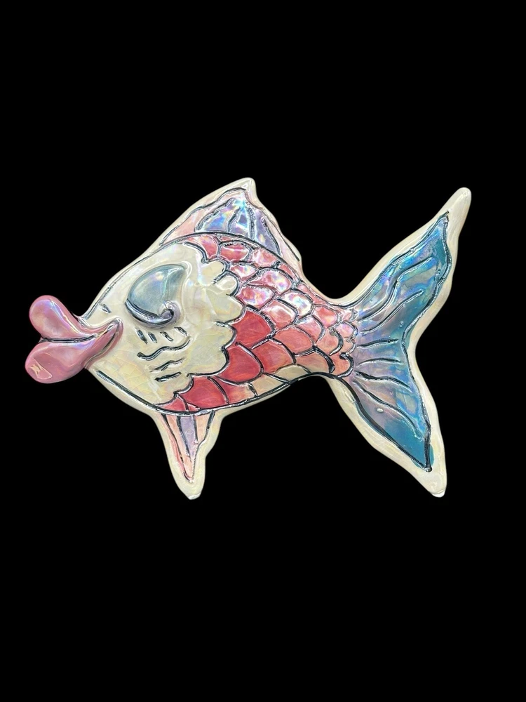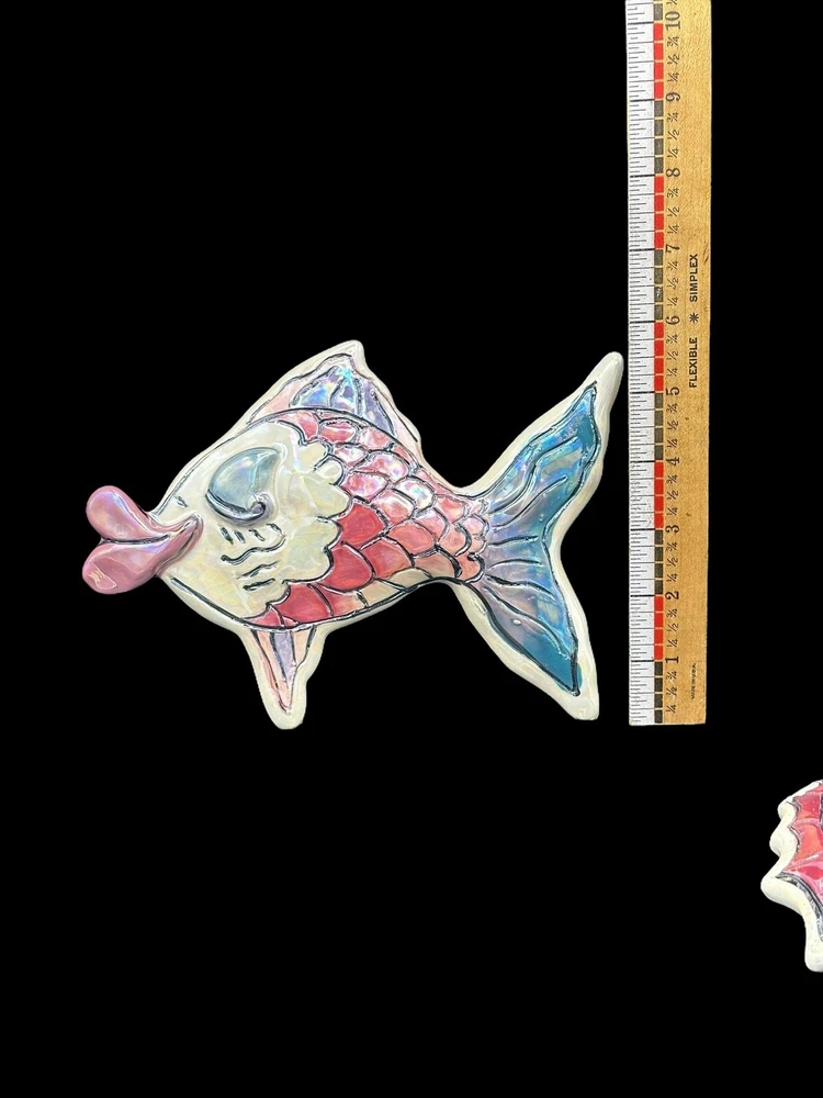 Blue Sky Clayworks Sea Life Set Kissing Fish Seahorse Turtle Nautical Beach Wall Some crazing. See pics.