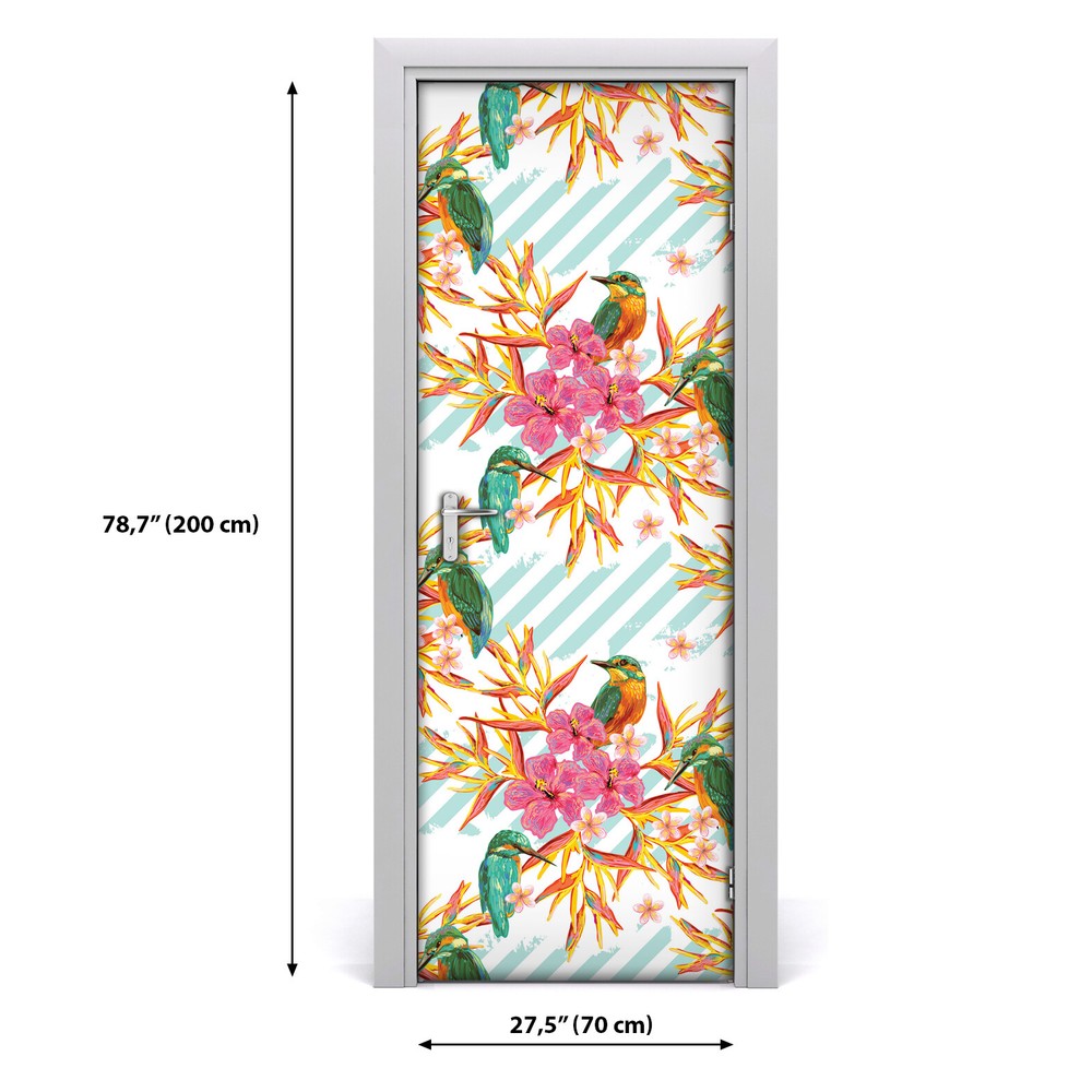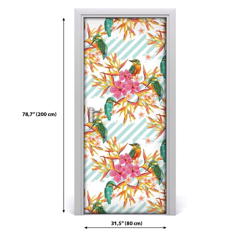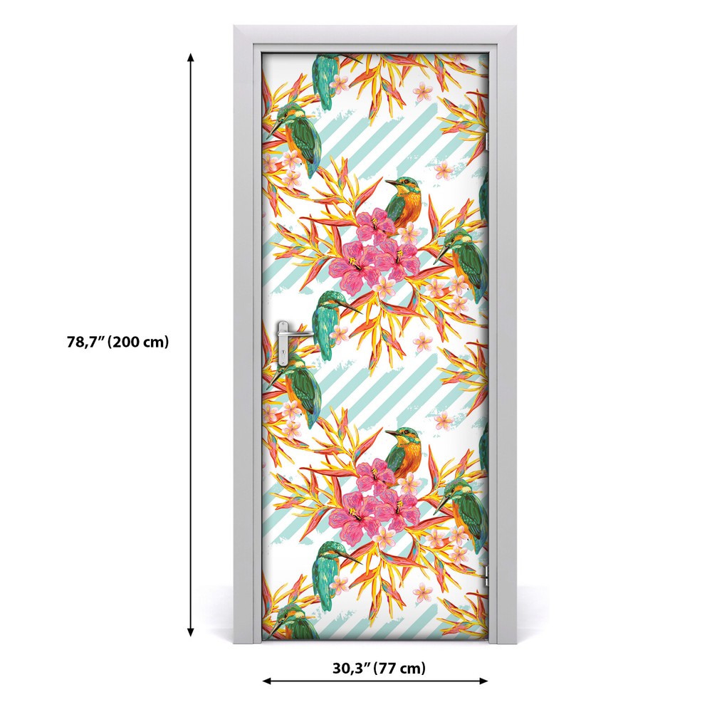 $ 13.2Removable Door sticker Pink Tropical Flowers Exotic Leaves Exotic self adhesive