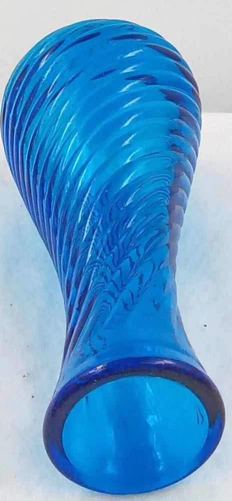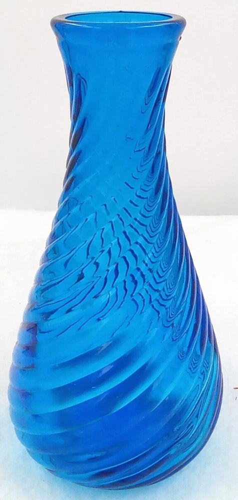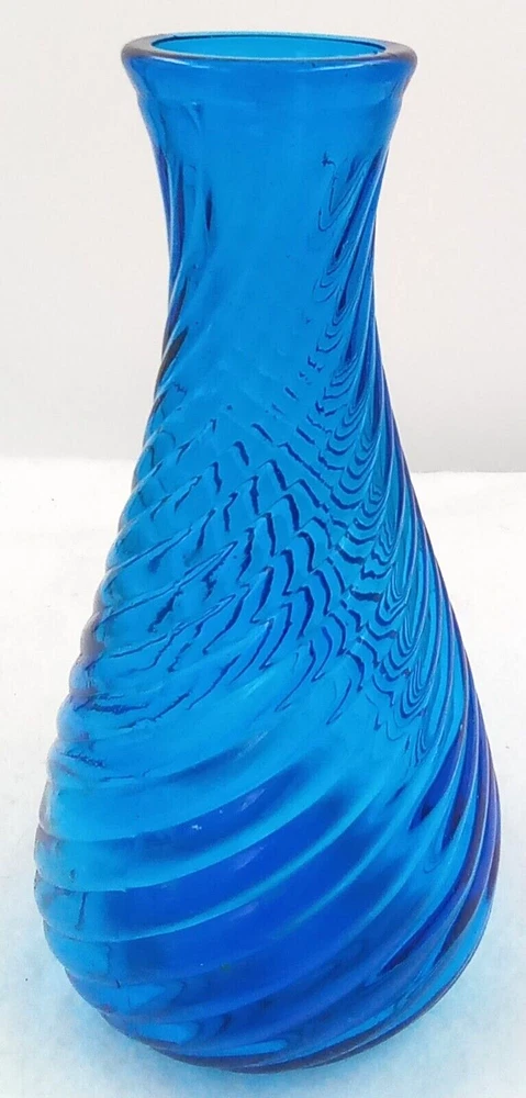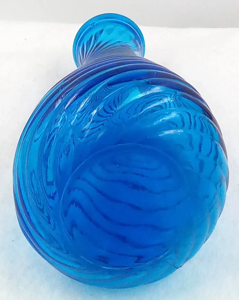 Blue Swirl Glass Flower Vase Art Deco Bottle Decanter Vintage Round Bottom