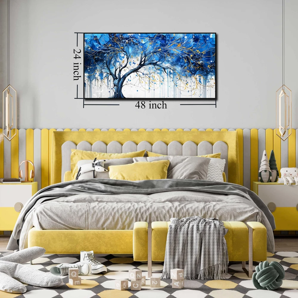 【CANVAS WALL ART SIZE】 Size is 24" x 48" Blue tree wall art bedroom 【HI-Q MATERIAL】 High quality, HD prints on premium canvas,fading resistant indoor.Blue tree wall art bedroom,modern canvas art wall decor for living room 【EASY TO HANG】 Each panel of canvas prints already stretched on solid wooden frames, gallery wrapped, lightweight,ready to hang. The side margins are also printed to create a particularly decorative effect.Blue tree wall art bedroom,modern canvas art wall decor for living room Added color and fun to your bedroom, living room,office, dormitory or apartment. 【STYLISH CANVAS ART DESIGN】 Looks exactly as pictured,Good idea for home interior walls decor such as guest room, office decor, hotel, dining room wall decor and others. It’s a great gift ideal to your friends.Blue tree wall art bedroom,modern canvas art wall decor for living room 【AFTER SALE SERVICE】 If the package have damaged during delivery, you can contact me any time, we can refund or resend a new one to you.