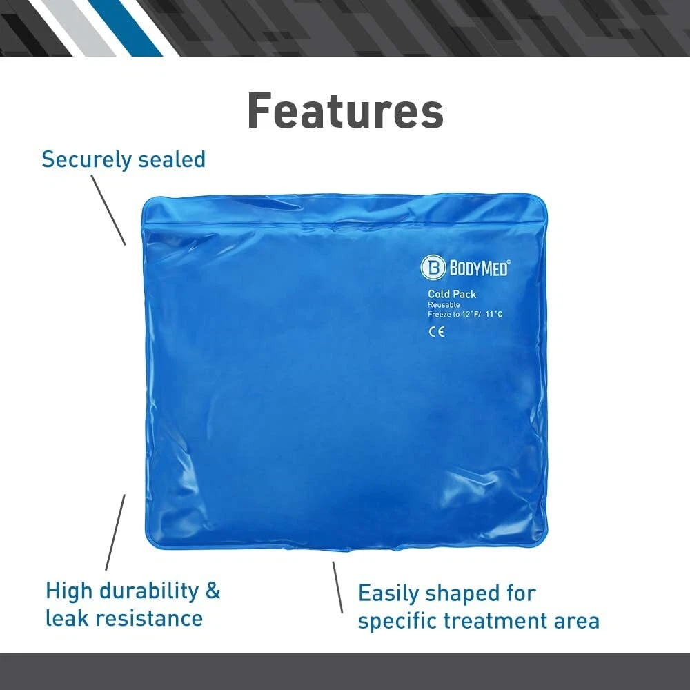 BLUE VINYL COLD PACKS cold packs feature robust covers that resist tearing and splitting, and they are securely sealed to prevent leaking. Their rugged construction allows these freezer packs to be used over and over again. The flexibility of ice gel packs, even when frozen, makes them easy to handle and apply, as they can be shaped to the specific area needing treatment. Their softness feels better against skin than a hard block of ice or conventional ice pack. Applied to the body, a orthopedic ice pack is a proven non-pharmaceutical remedy for a variety of joint and muscle pain, swelling and inflammation. They can be used as a sports injury ice pack solution. Each flexible reusable ice pack offers up to 30 minutes of soothing therapeutic cold. This blue ice pack can be used to provide pain relief, to treat fever, bruises, sprains and strains, and to help manage swelling. Simply apply immediately after an injury to control the inflammation of soft tissue. PLIABLE. The flexibility of ice gel packs, even when frozen, makes them easy to handle and apply, as they can be shaped to the specific area needing treatment. Their softness feels better against skin than a hard block of ice or conventional ice pack. DURABLE. cold packs feature robust covers that resist tearing and splitting, and they are securely sealed to prevent leaking. Their rugged construction allows these freezer packs to be used over and over again. EFFECTIVE. Applied to the body, the orthopedic ice pack is a proven non-pharmaceutical remedy for a variety of joint and muscle discomfort, and swelling. They can be used as a sports injury ice pack solution. Each flexible reusable ice pack offers up to 30 minutes of soothing therapeutic cold. VERSATILE. This blue ice pack can be used to provide pain relief, to treat fever, bruises, sprains and strains, and to help manage swelling. Simply apply immediately after an injury to control the swelling of the soft tissue. SINGLE & TWO-PACK. Available as a single or in a two-pack, keep this cold pack on hand in the freezer for regular icing or whenever you need it most