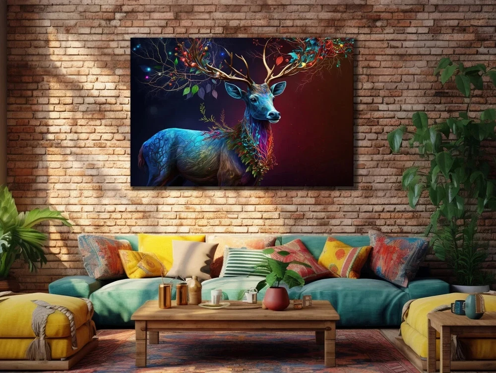 Blue With Lights Deer Abstract Design Unframed Canvas Print Australian Wall Art
