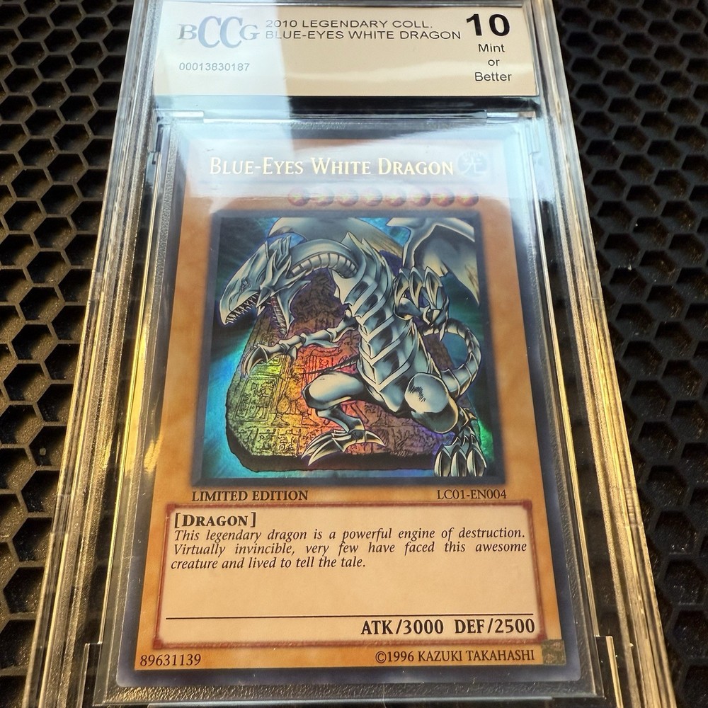Blue-Eyes White Dragon - LC01-EN004 - Ultra Rare - Limited Edition Image is a stock photo of the card. You will receive the card in Near Mint condition Condition: Near Mint ATK/DEF : 3000/2500 Attribute : Light Card Number : LC01-EN004 Card Rules : No rulings available for this card. Card Text : Card Type : Normal Monster Edition : Limited Level : 8 Monster Type : Dragon Name : Blue-Eyes White Dragon Passcode : 89631139 Pendulum Scale : Rarity : Ultra Rare Set : Legendary Collection Be sure to visit our store for a wide selection of your favorite cards! We are running specials RIGHT NOW!! Shipping Options: ~Ships in a regular white envelope with a stamp for FREE! (THERE IS NO TRACKING INFORMATION AVAILABLE FOR THE ABOVE METHOD. SHIPPING TIME IS 4-10 BUSINESS DAYS) ~Ships in a TRACKEDbubble mailer for $5.99! ~Shipments are handled same or next business day. ~FREE SHIPPING for each additional card, so shop around our store!