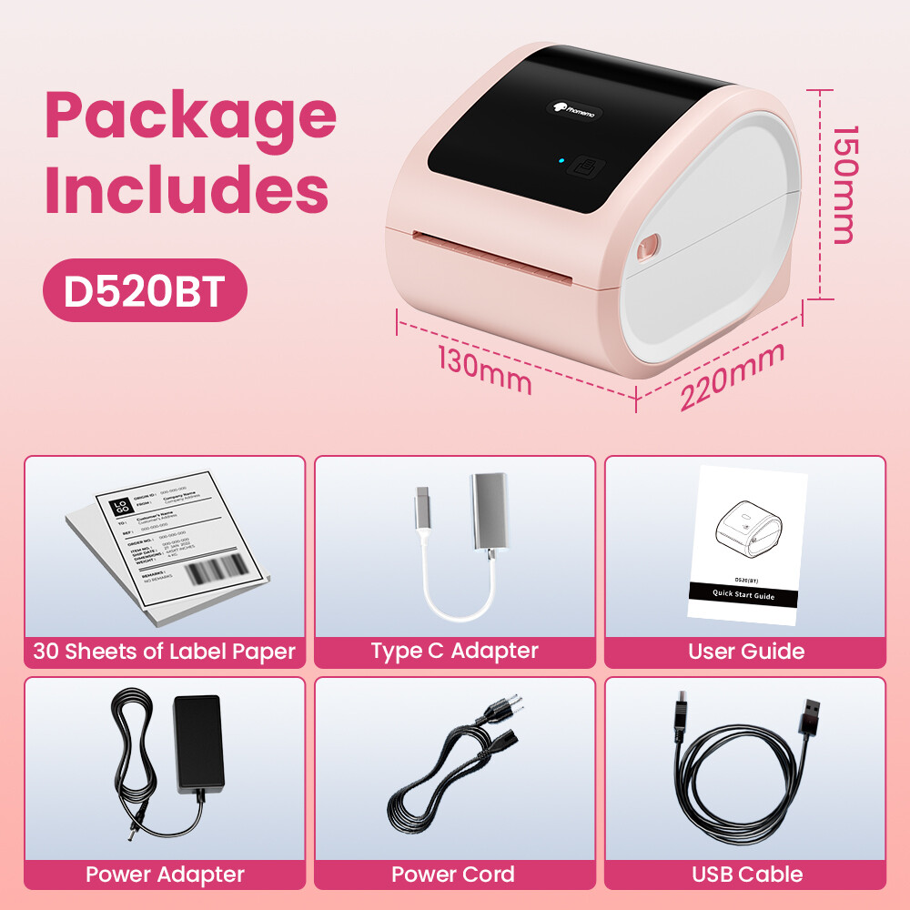 Feature: Brand:Phomemo Model Name:D520-BT Connectivity Technology:Bluetooth Printing Technology:Thermal Special Feature:thermal shipping label printer bluetooth, bluetooth thermal label printer for shipping labels, bluetooth shipping label printer, Compatible with Mobile Phone & PC, Large built-in paper binthermal shipping label printer bluetooth, bluetooth thermal label printer for shipping labels, bluetooth shipping label printer, Compatible with Mobile Phone & PC, Large built-in paper bin Printer Output:Monochrome Maximum Print Speed:150mm/s Item Weight:1.1kg Product Size:175×218×157mm(L*W*H) Effective print width:108mm Printing Resolution:203DPI What's in the box Label Printer USB Cord & Type C Convertor Power Adapter & Cable Labels Built-in Label Holder About this item 【Lastest Built-in Paper Bin】Phomemo shipping label printer comes with a Large inner Built-in Paper Bin, you no longer need to worry about purchasing a separate label holder, saving you both time and money. Both fanfold labels and roll labels could be used, giving you the flexibility to choose what works good for you. 【Cost-Saving for Your Business 】Bluetooth thermal label printer utilizes advanced thermal direct technology for printing. Give you a NO Ink, NO toner, Comfortable office environment! Not only an economical choice but also environmentally friendly for our planet. Say goodbye to the hassle of label printing and hello to convenience. 【Wireless Printing】The wireless thermal label printer enables wireless printing. Simply install the "Labelife" app from Google Play or the Apple Store to pair with Bluetooth on your iPhone, iPad, or Android phone. Alternatively, the printer also supports USB connection for PC, Windows, Mac, Linux, and Chrome. (PC printing needs to download the driver) 【Various Platforms Compatibility】 Phomemo label printer 203DPI provides you with clear shipping labels; The high printing speed of 72 PCS/min can greatly improve your working efficiency. Supports labels width ranges from 1 to 4.6 inches no matter fanfold label or roller label. Widely used to print labels from major sales and shipping platforms, such as amazon, eBay, Shopify, USPS, UPS, Esty, etc 【MEW Upgrade】 - Phomemo label printer is Equipped with The latest AF chip and high-tech thermal print head for stable and high-quality high-speed printing. With easy and simple operations, you can easily print your documents, photos, and more, making your life more convenient! Tip: How to start your printing with Chrome OS. Attach the printer and computer with USB and turn on the printer. Enter "Labelife" in the Chrome Web Store and add the extension to your Google Chrome. Open the Labelife extension. Click "Add" to discover your printer. And "Setting Printer" to complete the print settings. Open the file in Google Chrome and "Ctrl + P" to wake up the print interface, select the printer you just included and start Print. Item Specifics Brand : Phomemo Type : Label Printer Technology : Thermal Product Line : Phomemo Output Type : Black & White Input Type : Monochrome Connectivity : Bluetooth Features : Portable Supported Paper Size : 20-118mm Maximum Resolution : 203 x 203 DPI Black Print Speed : 150mm/s Effective print width : 108mm Mode : D520-BT Product Dimensions : 175×218×157mm(L*W*H) Payment Shipping Returns Contact Us We are required by law to collect sales tax for California buyer We Ship from CA. We ship within 3 working day after payment received from Monday to Friday,except for Saturdays, Sundays and Holidays. Orders placed after 10 a.m. PST Friday will be ship on next Monday. Although we ship to most areas served by our carriers, FedEx, UPS and DHL,we are unable to deliver to PO Boxes, FPO and APO addresses. Returns and exchanges are accepted within 30 days of the receipt of the merchandise. A full refund or exchange will be given if the merchandise is found to be damaged, defective, or not as described in the auction. Returns for any other reason will get a refund minus the cost that was incurred by us to ship the item. Before making a return, the buyer must contact US through the Ebay message system in order to obtain a return approval number, or the return will not be accepted. 1.We're a professional online wholesaler based in China. We are factory direct sale. We offer top good quality products to worldwide market at wholesale price. 100% customer satisfactory is our goal! 2.We welcome long-term business partners. Please contact us for discount wholesale price or cooperation. All right reserved. On Mar 6, 2025 at 20:22:18 PST, seller added the following information: