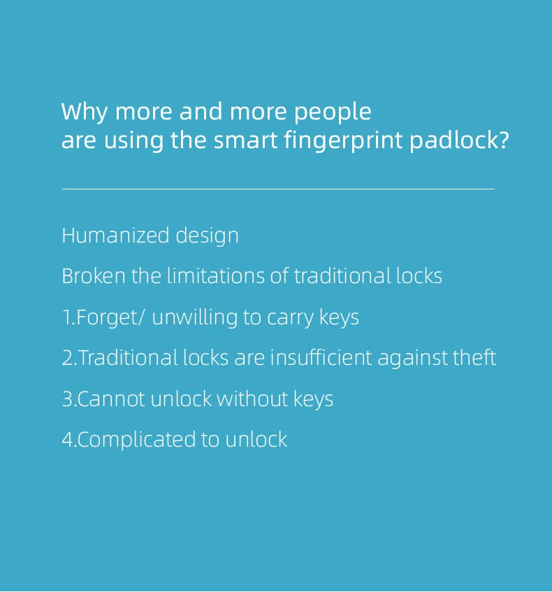 Product Description If you have any questions, please contact customer service first, do not open disputes easily, thank you! Specification: Bluetooth unlock app unlock Fingerprint unlocking biometrics Lithium battery capacity: 150mAh Storage capacity: 10 groups fingerprints FAR:<0.002% Working temperature: - 20 ℃ ~ + 70 ℃ Padlock: 3.7V 300mAh Charging voltage: 5V 1A APP: Tuya ldentifying direction: Support 360 arbitrary direction Pressing fingerprint recognition:Recognition resolution 508 DPI Lock body material: ADC12 zinc alloy Fingerprint setting short press to unlock, long press 5S to set Fingerprint, long press 10s to delete fingerprint Package Including: 1X Tuya Padlock 1X Charge Cable 1X Manual Payment Shipping Contact Us We accept paypal payments and all payments authorized by eBay. 1.We ship to your eBay or Paypal address. Please make sure your eBay and Paypal address is correct before you pay. 2.Items will be shipped within 1-2 business day when we received payment. 3.Delivery time depends on destination and other factors We strive for 100% customer satisfaction! Postive Feedback is very important to us. If you have any questions, please feel free to contact us via "Ask seller a question" , we will reply your email within 24 Working hours. Payment We accept paypal payments and all payments authorized by eBay. Shipping 1.We ship to your eBay or Paypal address. Please make sure your eBay and Paypal address is correct before you pay. 2.Items will be shipped within 1-2 business day when we received payment. 3.Delivery time depends on destination and other factors Contact Us We strive for 100% customer satisfaction! Postive Feedback is very important to us. If you have any questions, please feel free to contact us via "Ask seller a question" , we will reply your email within 24 Working hours. powered by