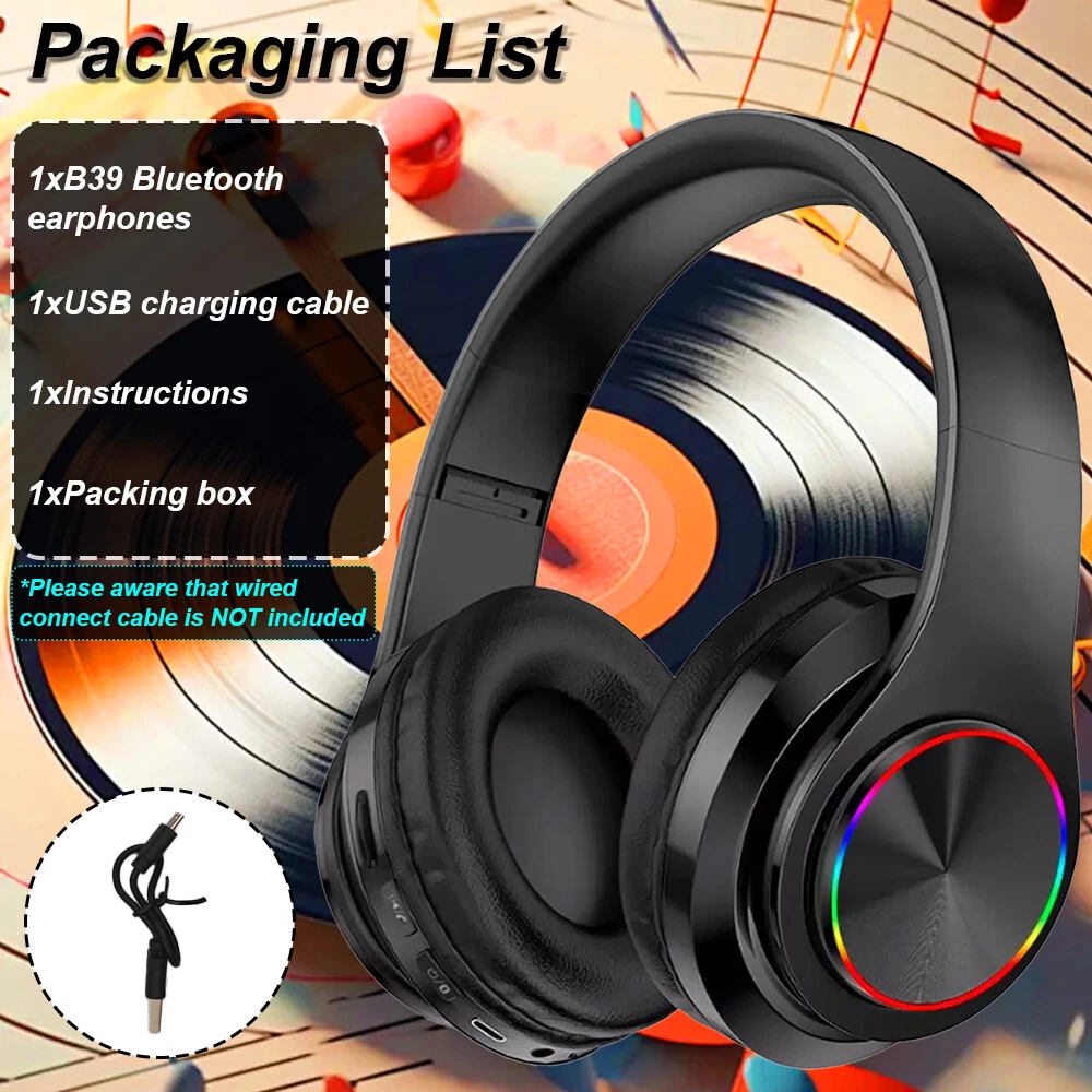 Wireless Bluetooth Headphones with Colorful LED Lights, Built-in Mic, Light Weight, Foldable, Wired HiFi Stereo Headphones for Classroom/Home Office/PC/Mobile Phone/Kids Adult Description: 1. Superb Sound Quality: The built-in premium speakers will provide a great listening experience, producing incredible sound quality with superior bass depth and high definition clarity. And if the battery run down, theres a choice of wired headphones for a never-ending bliss. Adjustable headband are ergonomic design and ultra-soft ear cups, and bluetooth headphones provide a comfortable around-ear fit. Headset Bluetooth Gaming Headset with Microphone LED Light Wired for PC Xbox PS5 PS4 Wireless Bluetooth Headphones with Colorful LED Lights, Built-in Mic, Light Weight, Foldable, Wired HiFi Stereo Headphones for Classroom/Home Office/PC/Mobile Phone/Kids Adult Description: 1. Superb Sound Quality: The built-in premium speakers will provide a great listening experience, producing incredible sound quality with superior bass depth and high definition clarity. And if the battery run down, theres a choice of wired headphones for a never-ending bliss. Adjustable headband are ergonomic design and ultra-soft ear cups, and bluetooth headphones provide a comfortable around-ear fit. 2. Comfortable Over-Ear Fit: Soft protein leather earpad and retractable headband lifts the burdens for your ear. No discomfort after long-time wearing. 3. Comfortable and Foldable: Space-saving foldable design not only saves space, but also is easy to carry, you can easily carry it anywhere. Our bluetooth over ear headphones will be your best choice for studying, going out, traveling, computer, airplane, fireworks. 4. Ever Power Off, Both Wireless & Wired: 1. The wireless mode: A built-in 400mAh battery provides up to 10-hr music time or talking time in a single charge; 2. The Wired mode: you can also use it as a wired headphone with the provided audio cable ( 3.5 mm audio cable need to prepared yourself ). so the headphones will never power off. 5. Bluetooth 5.0 Adopt: The Bluetooth 5.0 CSR Chipset, lower power consumption, superior compatibility. 6.Multi-Functions: headsets have several options for listening enjoyment. Built in TF card slot and you can use a TF/Micro SD card with loaded MP3 music and listen to the songs directly on your headsets. 7. Colorful LED Light: Wireless bluetooth headphone is designed with colorful LED light, The LED light is installed on both sides of the headphones which changes with the rhythm of the music, making the music you listen more dynamic and unique. Stylish design elements are sure to bring joy and excitement to your daily life. ---*** Please note: LED function only show one color to another, not RBG color at the same time. Specifications: Bluetooth Name:B39 Bluetooth Version: V5.0 Battery capacity:400mAh lithium battery Charging Time: About 2.5 hours Frequency: 2.402-2.480GHZ RF Performance: receiver sensitivity: -84dBm; transmit power up to 4dBm Frequency Response: 20 Hz - 20 KHz Signal to Noise Ratio (SNR): 70Db; Total Harmonic Distortion Rate (THD) 0.1% Power Indicator: Red and blue lights alternately flashing Package: 1x Headphone 1x Cable Item Specifics Brand Unbranded Model Headphones Connectivity 3.5mm Jack(cable not included) Type Wired/Bluetooth Headphones Color Black Features Active Noise Canceling Wireless Technology Bluetooth Form Factor Headband Microphone Type Built-In Number of Earpieces Double Payment We only accept payment via eBay. Please make your payment within 5 days after auction ends otherwise a non-payment dispute will be opened. We will ship to your eBay address. Please make sure your eBay address is correct before you pay. Shipping After receiving your payment, your order will be shipped within 1-2 business days from Australia. Delivery times may vary , especially during peak periods or toward remote area. You may choose what service you need. Economy Delivery : 4-10 Working Days Standard Delivery : 3-8 Working Days Express Delivery : 1-3 Working Days We are not responsible for anything late or lost by logistics. Returns Restocking fee: There will be a 15% restocking fee if returning mistakenly order or no longer needed item, read the tips below on how to avoid it. Read the item description carefully instead of only the listing title Choose the correct item from the drop-down menu (if applicable) before clicking on the add to cart button. If you have any questions regarding the item, please send us a message before purchasing. DOA (Dead On Arrival) : Take a picture of the outer box if you have received a damaged package, check all the contents inside for any physical damage and send the pictures to us as evidence within 3 Days for a return or refund. We are not responsible for any kind of compatible issues, or problems related to any specific software or games. Contact Us If your item has any issues, do NOT leave a Negative feedback without contacting us through eBay first, we will try our best to get it resolved and provide an address for you to return the item once it is qualified. Returns will be processed within (7) business day after receiving the item in original condition. Headset DESCRIPTION PAYMENT SHIPPING RETURN POLICY CONTACT US Hot Item Sports Earbuds Outdoor Waterproof Headphone Bluetooth Earphones Wireless Ear USD 13.39 Wireless Bluetooth 5.0 Headphones On Ear Headset Stereo Noise Cancelling w/Mic USD 9.59 Wireless Bluetooth 5.2 Headset Sport Headset Ear Headphones Earpiece USD 13.39 Wireless Headphones Bluetooth Earphones Headset Rechargeable Noise Cancelling USD 9.99 Bluetooth Headphones On-Ear Foldable Wireless and Wired Stereo Headset w/ Mic USD 9.99 New List Item Universal 360° Windshield Suction Car Mobile Phone Holder For iPhone Samsung USD 9.59 LCD Display Touch Screen Digitizer For Huawei P30 Lite MAR-L01A L21A LX1A LX1M USD 23.99 Wireless Bluetooth 5.0 Headphones On Ear Noise Cancelling Earphone Gifts w/Mic USD 13.99 Suction Windshield Car Pho