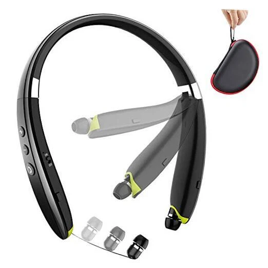 Bluetooth Headphones, Upgraded Foldable Wireless Neckband Headset with Black