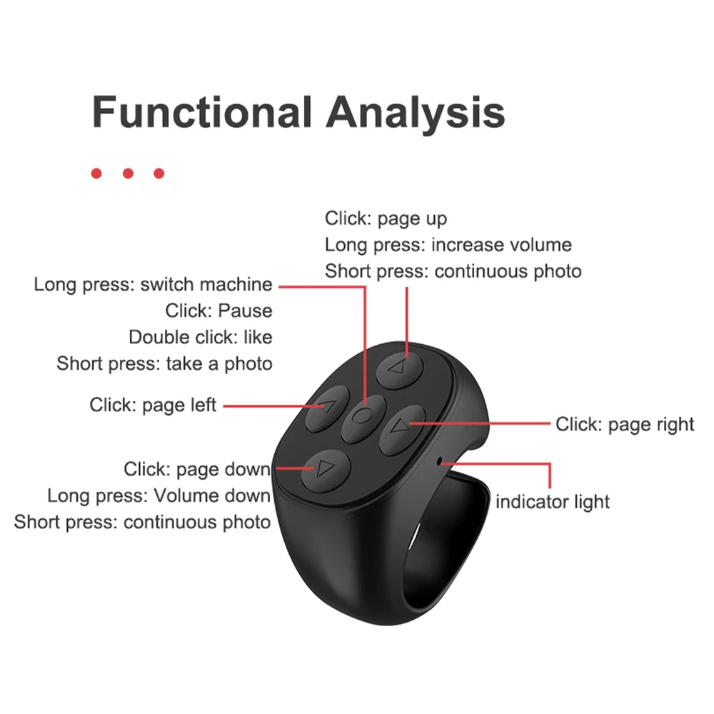 Bluetooth Compatible Phone Scrolling Page Turner Ring Fingertip Remote Control Wireless Design: The Wireless Remote Control Page Turner allows you to swipe videos on short video easily. It can be used to scroll through videos, double tap to like, pause and play. It makes you no need to touch your phone again, free your hands. Simple to Use: The Wireless Clicker for Phone is very easy to use, just click the button, double-click the button, and long-press the button to perform a series of operations. If you're watching a short video, you can click the button to play the next video, then double-tap the button to like the video you like. If you want to take a photo, after placing the phone, press and hold for 3 seconds to take a photo. High-Grade Material: The Wireless Camera Remote is made of high-grade ABS material and has an ergonomic rings design, which will not get tired after long-term use. Suitable for Short Video: Multi-function Fingertip Page Turner can be connected stably within 15 meters. It works with the most popular short video and ebook apps. Widely Applicable: The durable Remote Control for Cell Phone is compatible with IOS and Android smartphone and tablet system devices, convenient to use. Description: 1. It can be used to scroll through videos, double tap to like, pause and play. 2. You only need to click the button of Wireless Clicker for Phone, double-click the button, and long-press the button to perform a series of operations. 3. It is made of high-grade ABS material and has an ergonomic circle design, which will not get tired after long-term use. 4. Suitable for IOS and Android smartphone and tablet system devices. Specification: Product color: black/white/pink Product model: JX-05 Product feature: Short video page up and down, double click to save, take photos and video, volume increase and decrease, Type-C charging iWireless version::Ver.5.3 Support protocol: EDR+BLE Transmit power: Classll(-6dBm~+4dBm) Frequency (Hz): 2.40GHz~2.48GHz Wireless transmission distance: 15 meters/590.55 inches Charging interface: Type-C Input current: DC 5V Battery: 30mAh *1 Battery life: 48 hours Charging time: 30 minutes Product size: 37*8*33mm/1.46*0.31*1.3 inches Product weight: 6 g Packing List: Wireless Remote Control Page Turner*1 Type-C cable*1 Manual*1 1.You can make a Credit payment via Paypal.Paypal will let you use MasterCard,Visa to pay. 2.Payment should be completed within 5 days after auction closed, or unpaid dispute will be filed for an closing auction.An unpaid case will be filled after 4 days. ● We strive for 100% customer satisfaction ! ● Positive Feedback is very important to us. ● We hope that you contact us immediately BEFORE you give us neutral or negative feedback, so that we can satisfactorily address your concerns. ● We promise to offer the lowest price and high quality produce. Dear buyers : ● Welcome to my store ! ● Your satisfaction is our top goal,we appreciate your patronizing. ● If you have any questions, please contact us before leave negative or neutral feedback, we will try our best to solve the issue to your satisfaction, thanks ! ● If you are satisfied with our service, please rate the details of the transaction (Detailed Seller Ratings) on eBay. ● Please always talk to us via ebay Message. ● We appreciate your business and look forward to growing our e-Bay sales with satisfied customers.
