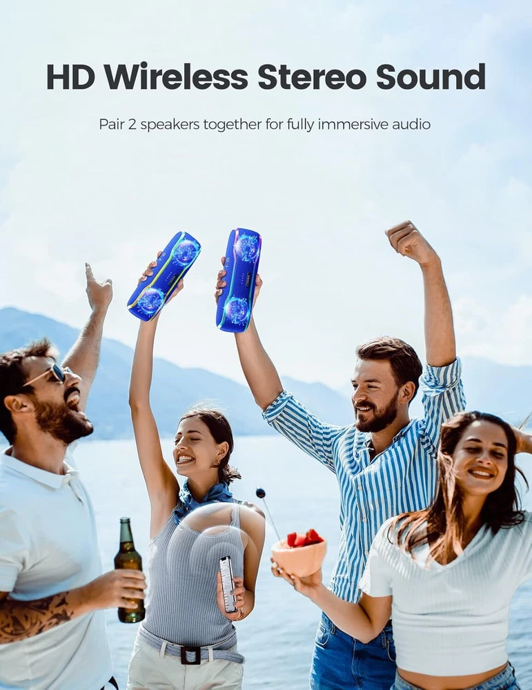Product Description ERKEISEHN Bluetooth Speaker, IPX7 Waterproof Wireless Speaker with Colorful Flashing Light, 25W Super Bass with 24H Playtime, 100ft Bluetooth Range, TWS Pairing for Outdoor, Home, Party, Beach, Travel [Loud Stereo Sound & Dual Pairing] Deliver surprisingly loud and well-balanced sound with virtually no distortion through 2 drivers and our proprietary technology. Enjoy up to 25W room-filling sound with punchy bass, strong midranges, and crisp highs. Pair 2 speakers together via Bluetooth to play the same music in perfect sync, double the volume, and create an immersive stereo sound experience. It is your perfect partner for playing games, listening to music and watching movies. [IPX7 Waterproof & Rugged Design] Being IPX7 waterproof, this wireless Bluetooth speaker is protected against rain, spills, and splashes and can even survive submersion in up to 3.3 feet of water for up to 30 minutes. Engineered to with stand bumps and drops, the outdoor speaker in a rounded triangular prism shape is more durable than others and compact enough to hold. Perfect for using in house parties or taking to pool parties, beach parties, barbecues, biking, hiking, camping, etc. [Bluetooth 5.3 & Up to 24 Hours Playtime] Bluetooth 5.3 provides incredible wireless Bluetooth range of up to 100 feet from your device. And this portable wireless Bluetooth party speaker lasts all day long with up to 24 hours of playtime per charge. You can turn on/off the multi-color lights & two hidden speaker lights by click the "Light Button" on the surface to suit your needs and extend the battery life. The actual playtime varies by volume level, audio content, and use. [EQ Pulsing Colorful Light Show] Get the party started with crisp and clear sound and rock the party with multi-color flashing lights. A short press of the "Light Button" to enable the flashing colorful LED lights and livens up your party. The multi-color LED lights and two hidden speaker lights will sync to the beat of the music to create a pulsing light show. [What You Get] 1 waterproof Bluetooth speaker,1 Type-C charging cable, 1 quick start guide, and lifetime technical support. The built-in microphone lets you handle phone calls handsfree without reaching for your phone. You can also stream music via the AUX jack. Crystal clear music and colorful flashing lights make these Bluetooth speakers with lights great gifts for men and women, girls and boys. About Us We are a reputable seller with many years of experience selling on eBay. Our goal is to provide high-quality products and excellent customer service. Payment 1.We accept PayPal only. 2.All major credit cards are accepted through secure payment processor PayPal. 3.Payment must be received within 7 business days of auction closing. 4.We ship to your eBay or Paypal address. Please make sure your eBay and Paypal address is correct before you pay. Feedback will be left automatically after we receive your feedback. Please contact us before leaving a Negative feedback or Neutral feedback. We would try our best to help you solving any problem. Shipping Items will be shipped within 1-3 business days when we received payment. (Orders are not processed on weekends & holidays) Tracking information will be sent once item is shipped. Delivery time depends on destination and other factors Item is shipped to ebay address. Leaving correct address can minimize delay. For international shipping and shipping to Guam, Hawaii and Alaska, Please contact us before placing the order. International buyers please note: Import duties, taxes and charges are not included in the item price or shipping charges. These charges are buyer’s responsibility. We will try our best to reduce the risk of the custom duties. Local pick-up is unavailable at the moment. Returns For any issues with Defects, Return, Item Exchange request, please contact us first and send us a message first before opening any type of case or request. We devote ourselves making EVERY CUSTOMER in 100% Satisfactory and resolve any problem. We highly value and appreciate your business. Thank you. No returns will be accepted without an RMA number. Please contact us for the RMA number. Return is acceptable within 30 days of delivery. Return for replacement or money back is optional. Returned items must be in the brand new, unaltered and resalable condition. Seller is not responsible for any labor cost, expense in a dealer store, or damage due to wrong installation. Contact Us We reply any email messages within 1 business / working days(off-duty at weekend). If you do not get a response from us, then please check your junk or spam mailbox. Our Business hours: Mon-Fri 9:00-18:00, UTC/GMT +8 hours. Please contact us either by clicking "contact seller" in the "purchase history" section or simply click "ask a question" at the bottom of this page. If you are unsatisfied with our item or service, please contact us before leaving any feedback. We are committed to resolve all issues in a friendly and satisfactory manner. powered by