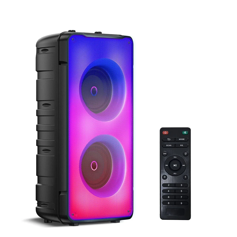 A67 Bluetooth Speaker is a Powerful Party Speaker with Booming Bass, Crystal Clear Treble, and flowing flame Light Effects. 60W Rich Bass Party Speaker -- two high-quality full range speakers for vocal clarity and a rear heavy bass guide tube enchance powerful bass. 6 Colors Party Light -- Colorful light show beating with the rhythm of the music Microphone Slot -- Just plug in your Microphone to sing Karaoke 10000mAh Battery -- Up to 6-24 hours playtimes, bring the party anywhere(Depends on the volume played and the type of song) 120W Super Stereo Pairing -- Connect two A67 wirelessly with the TWS feature Bluetooth 5.0 -- A fast and stable signal transmission 6 EQ Modes -- Switch mode according to different environment (Pop Music, Rock Music, Jazz Music, Classical Music, Country Music and Normal Music) Support FM radio -- FM channel automatic or manual control Support Digital Display+Intelligent Remote Control Support USB Flash Drive music playback Support TF Card / 3.5mm Aux TRUE WIRELESS STEREO SYSTEM -- 120W POWERFUL BLUETOOTH SPEAKERS Do you want to create a true surround stereo system in your living room, bedroom, office, Valentine's Day party, christmas party, birthday party and various parties? Pairing two A67 Bluetooth speakers together, creating Left and Right channels and upgrading 120W stereo surround sound immediately. open your favorite hit songs, movies or games, you will be in an immersive stereo. Package list 1 x A67 Bluetooth party speaker 1 x Remote control (needs2*AAA batteries, No included) 1 x AUX cable 1 x USB TYPE-C cable 1 x User manual More Features 1: Bluetooth speakers with lights 2: Karaoke machine - Karaoke machine for kids boys girls adults, Bluetooth speaker with microphone(no include Mic) 3: PA system 4: Bluetooth speaker with FM radio 5: Support Bluetooth, AUX, USB, TF card four ways to play Bluetooth Wireless speakers Loud - Great Sound Quality: A67 Party Bluetooth Speaker is designed for the ultimate in-music sound, The wireless boombox bluetooth speaker is equipped dual 4'' full range speakers and a rear heavy bass guide tube. 60W Big blueooth speaker can provide very powerful stereo and amazing bass sound. It has the ultimate sound ,6 EQ modes and the colorful LED light show will bring you an unprecedented audio-visual feast, which will make the party atmosphere extraordinary. Bluetooth speakers poratble wireless - TWS Function & Colorful Light Show :The pairing of two A67 loud big bluetooth speakers are crazy, the 120W stereo surround sound immediately invades your hearing. A67 can display 6 kinds of lighting effects jumping with the rhythm .The lights like flames and water can be switched back and forth, the colorful lights occupy your field of vision, and your heart beats wildly with the music. It's awesome Light Show! Multifunctional portable bluetooth speaker - Large capacity battery & Bluetooth 5.0: The powerful long-life 10000mAh battery technology Supports long play time and colorful light show.Bluetooth 5.0 technology can freely and easily connect your Bluetooth speaker to your smart phone(connection range of 100 feet), including other Bluetooth-enabled devices compatible. The 3.5mm audio aux cable is wired to smartphone, MP3, MP4, Computer, PC, TV and other non-Bluetooth devices with 3.5mm audio jack. karaoke machine for kids adults - Karaoke Machine & PA System: A67 bluetooth speaker is equipped with karaoke system and PA system. It is recommended to use it with a microphone, so that the passionate singing can provide the best musical atmosphere and effect for your party. It can make your kids, family members and friends enjoy more happiness in life; It can also make the work of teachers, tour guides, dancers, etc. easier and more convenient. (The product does not include a microphone) Bluetooth speakers for home - Worry Free Service & Ideal Gift Choice: We will provide a 12-month warranty and free consulting services , if you have any questions about the product, please feel free to contact us. We will provide you with the best customer service. Ideal as a holiday gift for Birthday, Christmas, for your kids or friends. The party speaker is suitable for listening to music, watching movies, parties and even singing karaoke, weddings, block events, conferences, etc