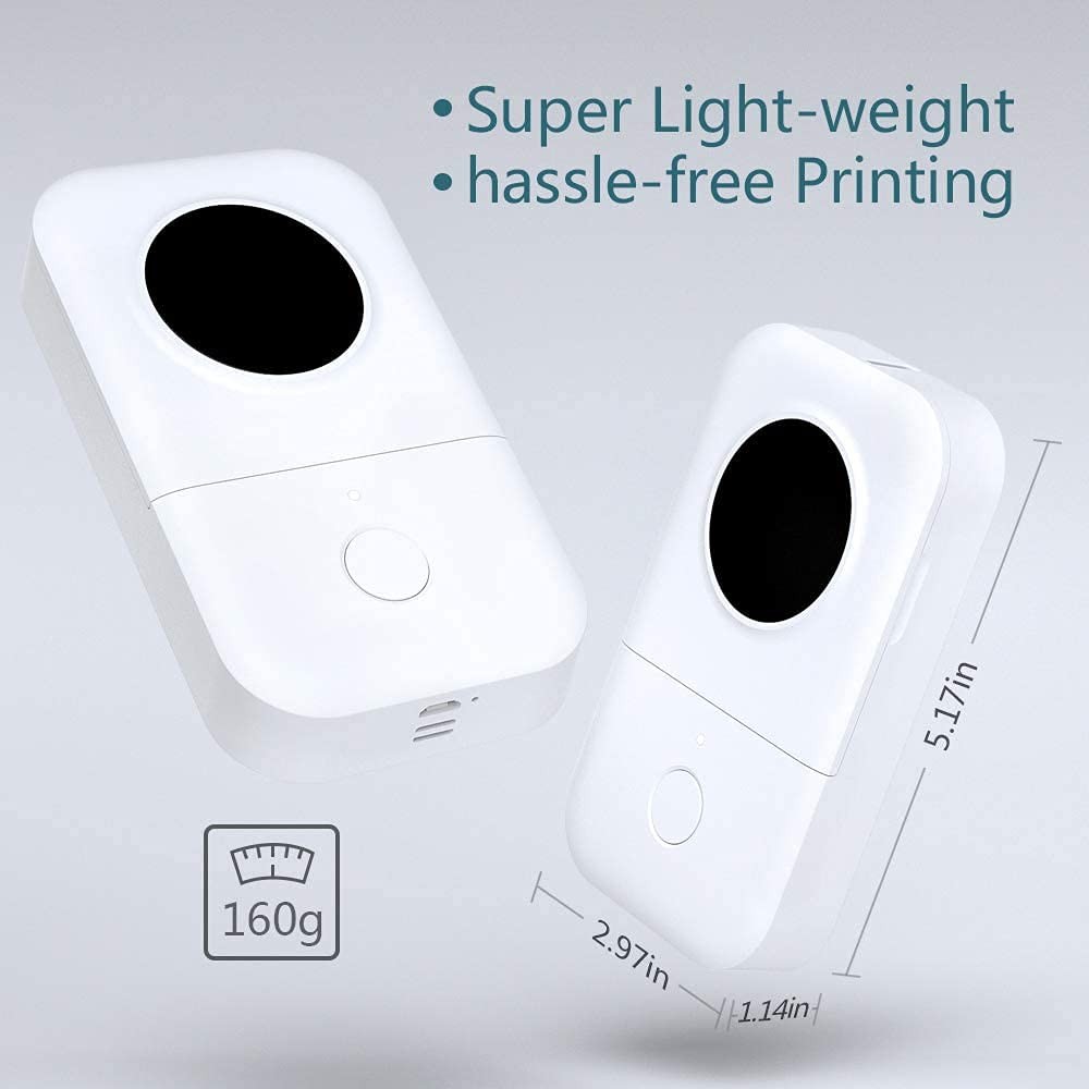 Product Information Printer Output Type: Monochrome Resolution: 203dpi Weight: 0.35 LB/160g Printing Method: Direct Thermal Printing Print Speed: 60mm/s Print Head Life: 50KM Data Transfer: Bluetooth 4.0 Size: 5.2 x 2.3 x 1.2 Inch (131 x 75 x 29 mm) Support System: for IOS 8.0 + Android 4.0 and above Wireless Distance: 10m Battery: Built-in 1200mAh Rechargeable Battery Attention : ★Please insert or pull out the charge cable lightly in case of the any damages on the port. ★ Please pull out the cable after finish the charging. ★Please do not charging or using the printer under the high temperature, high humidity, and foggy circumstance (like in the bathroom, stream room and beside the fire) in case of any dangerous. ★ Improper charging methods may be cause damages to the print head. ★ Please do not touch the print head by your fingers in case of the high temperature. ★ Please pay attention to the sharp blade. Package List: 1* Label Printer 1* Roll Printer Paper 1 * User Manual 1 * USB Cable Please note that: 1.Download the app "printer master" from apple store/google play 2.connect the Bluetooth via "printer master" app, not on the phone system 3.When install the paper, the printing side of the paper is face left 2025 Upgrade Version Label Maker - The portable bluetooth label maker Support continuous label tape and labels in fixed length. It is half weight and size of the traditional label maker. DPI increased 25% for more clear image. Built-in recharge battery long working time. Save Money - Thermal technology - doesn't require ink, toner, or ribbons, Lower cost compared to inkjet printers. Los of thermal color paper for your choice (This label maker is Monochrome Printing Output, which only prints black text. We can create color-label artwork, printing with color-patterned label tapes is required. ) Wireless & Portable - Mini size wireless bluetooth connected label printer for Convenient & Fast printing, Create Labels from Mobile Devices, easy for custom label. High Quality Printing - This Small thermal label printer provides superior print clarity resulting in hassle-free printing- high quality crisp, dark imaging and smooth printing effects and fast processing. Widely Use in Life – D30 handy printer can printer 16 sizes thermal paper, and we also provide you many different color label paper. You can use it in home/office organization.