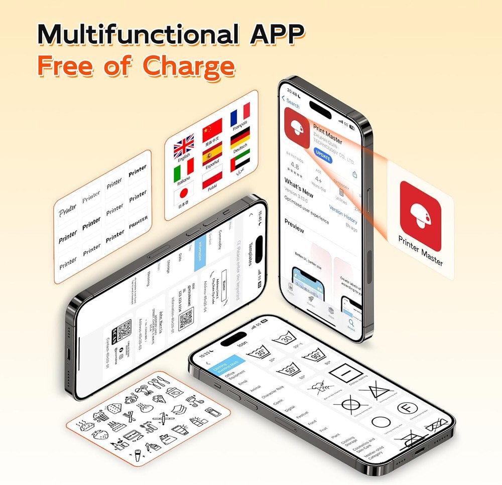 About this item Ultra-Portable & Wireless Thermal Printer - This printer features a compact, slim design with a built-in 2200mAh rechargeable battery, making it a portable label printer perfect for on-the-go use. Seamlessly connect via Bluetooth to mobile devices (Android/iOS) or USB to PCs, ensuring wireless printer flexibility for home, office, or logistics settings. High-Speed 4x6 Shipping Label Printer - Designed for efficiency, this 4x6 shipping label printer delivers professional-grade performance with 203 DPI resolution, ensuring crisp barcodes, QR codes, and addresses. Its thermal technology supports rapid printing for shipping, warehousing, and retail needs, boosting productivity without delays. Inkless & Cost-Effective Thermal Printing - As an inkless printer, it eliminates ink and toner costs using advanced thermal direct technology. Compatible with roll or fanfold labels (1.57"–4" width), it’s ideal for businesses seeking eco-friendly, low-maintenance solutions for shipping labels, inventory tags, and organizational tasks. Multi-Device Bluetooth Label Printer - This Bluetooth label printer works effortlessly across devices: pair wirelessly with smartphones/tablets via the "Print Master" app or connect via USB to PC/ laptop (Compatible with Windows10/11, MacOS, Chrome OS, and Linux systems). Smart Customization - Unlock limitless creativity with the "Print Master" app, offering 1,500+ icons, 110 fonts, and 200+ templates. Print shipping labels, branding logos, or home organization tags in 20 languages. Product dimensions: 2.44"D x 10.31"W x 1.26"H
