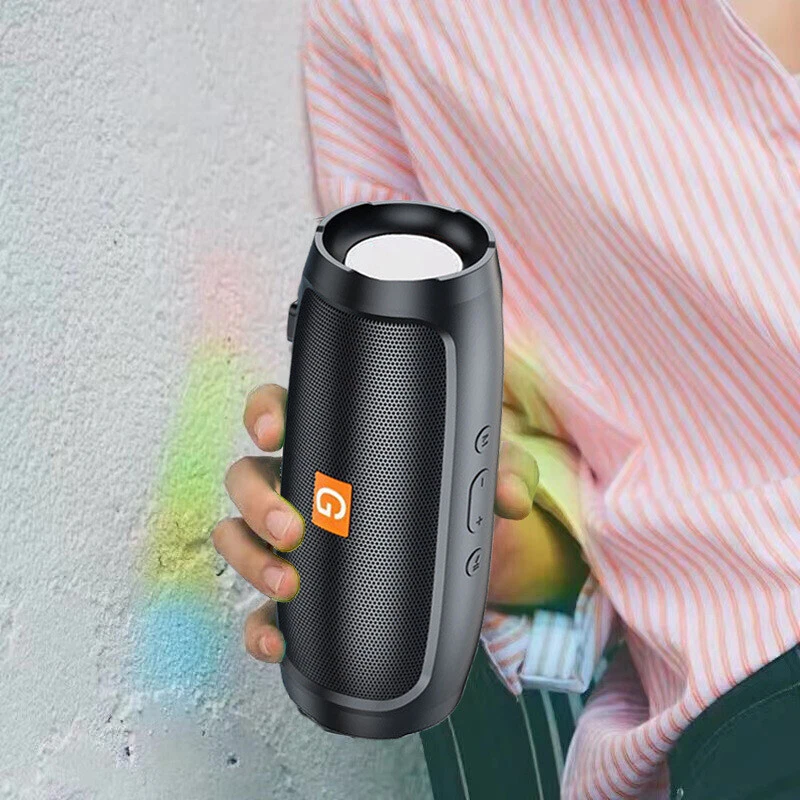Features: 1. Brand new and high quality. 2. Mesh cover for protect speaker from water, dust, shock. 3. IPX1 waterproof, dustproof, shockproof. 4. 3W*2 big power with two bass diaphragms on each side, vibrate when playing music. 5. Cylindrical shape and built-in left and right channel offer 360° stereo. 6. Call function, noise canceling microphone makes you answer calls without reaching your phone. 7. FM receiver makes you listen to the radio freely. 8. Support MP3, WMA, WAV, FLAC, APE format music files. 9. Support TF Card or misro SD Card up to 32G, support USB 2.0 Disk. 10. Support USB flash disk plug and play. 11. Support external MP3 / MP4 / computer and other audio input function (AUX) 12. Easy button control, you can press buttons to turn on/off, play/pause, switch mode, skip songs, adjust volume etc. 13. Bluetooth 5.0, fast connection and stable signal, compatible with all Bluetooth devices. 14. 1200 mAh battery for up to 5hours of playtime at 2/3 volume on a full charge. 15. It's not only a bluetooth speaker, but also a radio, a wired speaker, a bass boom box. Specification: Bluetooth version: 5.0 Bluetooth distance: <33Ft=10Meter Support: FM, TF card input, U disk input, 3.5mm audio input Extended memory: 32G(Not included) Battery capacity: 1200mAh Charging Time: 2-3 hours Listening/Talking time: 5-6 hours Waterproof level: IPX1 Charging parameters: 3.7V Support music format: MP3, wav, wma, FLAC, APE Frequency response: 100Hz-20KHz Signal to noise ratio: ≧75dB Distortion rate: <0.5% Material: ABS, mesh Color: Black, Blue, Red Size:19 cm * 8 cm * 8 cm Package included: 1 x Portable Bluetooth Speaker 1 x USB Charging Cable Operating instruction: Open speaker power,its led lights flashing. Open the bluetooth mobile devices,search for "CHARGE MINI" this device name. Click on the pair after paire after speaker voice prompts. then you can play music. Mode switch: press "M” button for FM radio. On Nov 3, 2024 at 20:46:25 PST, seller added the following information: