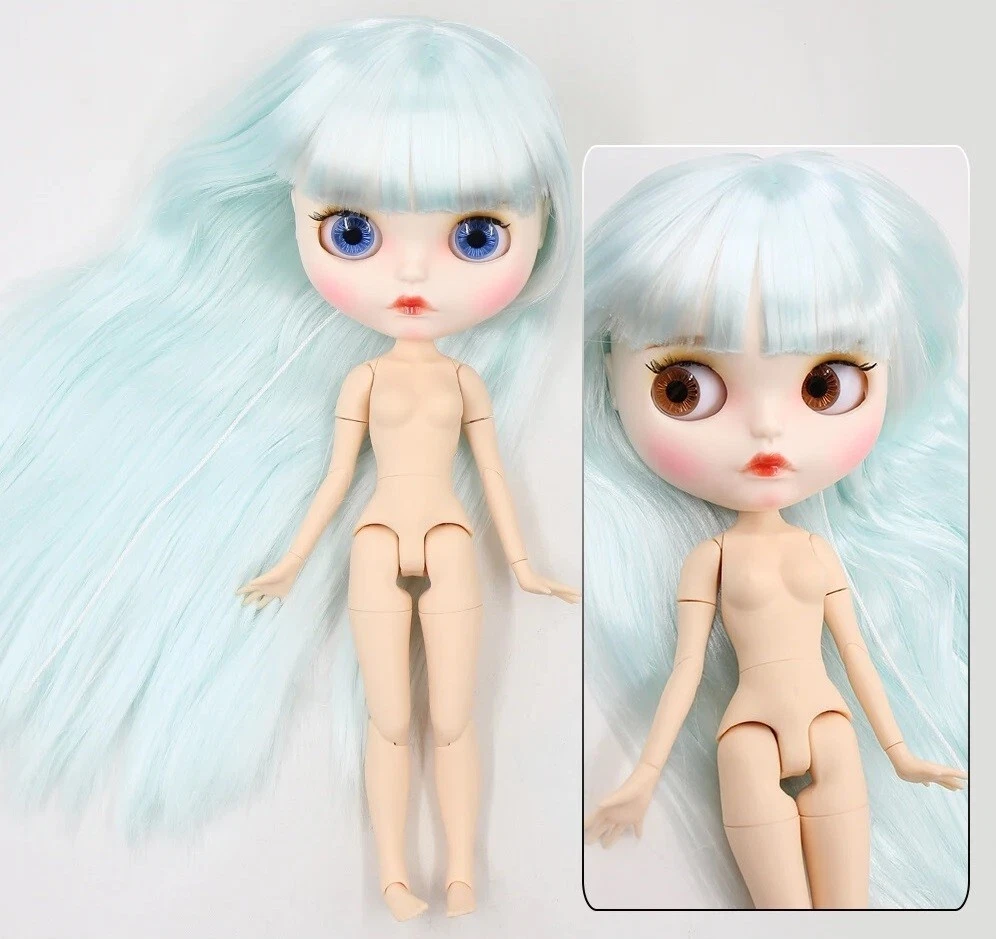 Blythe Doll Azure Hair White Skin Matte Face Interactive Toys 4 Eye Color Puppet There are just Limited quantity available! Get yours NOW before we run out!!! Step into a world of creativity and magic with our stunning 12-inch Blythe doll! Perfect for collectors and doll enthusiasts, this Blythe doll is ready to captivate hearts with her unique charm and endless possibilities for customization. Features: ✨ Expressive Eyes: Four different eye colors and positions with a simple pull of a string, reflecting her many moods and styles. 👗 Customizable Beauty: Change her hair, makeup, and style to create a doll that’s uniquely yours. 🌈 Premium Quality: Crafted from durable, high-quality materials to ensure she stands the test of time. 📏 Perfect Size: At 12 inches tall, she's the ideal size for both play and display. Why You'll Love Our 12" Blythe Doll: Endless Creativity: Perfect for photography, crafting, and artistic projects, she’s a blank canvas for your imagination. Community Connection: Join a worldwide network of Blythe enthusiasts who share your passion and creativity. Unique Gift Idea: A thoughtful and personalized gift for birthdays, holidays, or any special occasion, sure to delight both children and adults. Bring home the magic of the 12" Blythe doll today and dive into a world where imagination knows no bounds. Embrace the charm, creativity, and joy that only a Blythe doll can offer. Order now and let the adventures begin! Dolls are selling in nude, Not including clothes and accessories.