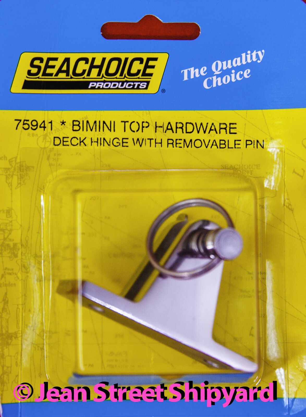Sea choice Part 75941 Bimini Top Deck Hinge with Quick Release Pin Quality 316 Marine Stainless Construction 1/4 inch spring loaded quick release pin Base Dimensions 2-7/16 inch Long x 3/4 inch Wide Installs with #10 Countersunk Fasteners (not included) Authentic Seachoice Product from Authorized Seachoice Reseller No Hassle Warranty - We are Authorized to Handle Any Warranty Issue Direct for You Really In Stock in our Own Store - Ready to Ship to YOU Quickly and Carefully Packaged and Shipped by our Own Ship's Store Staff No Middleman or Fulfillment Center - Just a Family Business Proven Reliable Seller Real Customer Support from a Real Working Boatyard FREE HASSLE FREE RETURNS Thanks for shopping with Jean Street Shipyard . We care for our products because we care about our customers. Your purchase will be carefully packaged by our own ship’s store staff, not someone at some far away fulfillment center. When we say your item is "new" , then that’s what you get. We don’t sell seconds, overstocks, obsolete or outdated inventory or anybody’s rejects as new product. We are an authorized Seachoice dealer, and authorized dealer for many other marine product lines. Our inventory is right on hand in our own store, and is carefully selected using the experience that comes with 175 plus years in business in the Marine industry. We have been in the same place, same building, doing the same thing since 1843, and we are standing by now to serve your boating needs. We sell and endorse the products that we use ourselves and products that have stood the test of time. We have been around long enough to see what works and what doesn't. When you need assistance or have a problem, you don't get somebody in some far away call center reading que cards, we will put you in touch with a skilled professional right from our own shop that actually uses the product, someone who has likely also had your question or problem as you. Get the advantage of a small business that has time to care about every single customer and also has the experience to help you properly. Like to know more about us ?? ... Google us - Jean Street Shipyard Tampa See you again soon! By the way… Jean Street Shipyard stocks thousands of items right in our own store. We strive to stock the products that most boaters need, and have it handy and always ready to ship. We are adding products to our eBay store every day. So if it’s not here, or if you don’t see exactly what you need, chances are that we have it stock or can get it for you quickly. Please message us, email us, or give us a call. We are standing by to serve you. If you need larger quantities of an item that is online at our store please contact us. We can handle special orders and build lists. Give us a call! Return Policy: If this purchase does not meet your expectations or is not as described or photographed, or even if you just changed your mind or ordered the wrong part - its all OK - please contact us within 30 days from delivery to your shipping address for return instructions, or just return it through eBay. We want to make your Online experience as seamless and easy as coming in person. So no stress, we will make it work. If you have a warranty problem, we have a good reputation with our venders We will contact them for you, they usually listen to us, we can ship you an exchange without the time to wait for an answer from the manufacturer. We strive to meet your expectations! All offered items by Jean Street Shipyard, new, used or pre-owned are selected by us for High Quality and Excellent value. Contact us via text; phone; message or via email for inquiries or questions. or stop by and pay a visit! © Jean Street Shipyard, Inc. All content of this listing, both images and written text and copy, is the priority work product and intellectual property of Jean Street Shipyard Inc. and cannot be copied or used for any reason without the express written permission of Jean Street Shipyard.