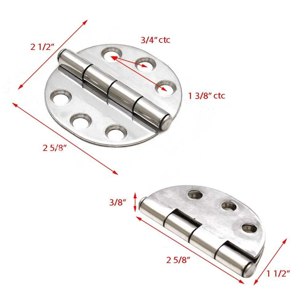 Hard to find original boat parts - Up to 70% off in our eBay store! Boat Round Butt Hinge | 2 5/8 x 2 1/2 Inch 14 Gauge Stainless We're your port for thousands of hard to find boat parts, original manufacturer's parts and marine surplus. Check out this deal!! Description Boat part number 8202950 is a new round butt hinge. Part manufacturer and number unavailable. This hinge is constructed out of 14 gauge stainless steel. It measures approximately 2 5/8" L x 2 1/2" W x 3/8" H overall. The hinge comes with (2) aluminum cover plates that have adhesive backing. It has (6) 3/8" Dia. mounting holes, (3) on each plate. The mounting holes are 3/4" CTC apart. Please see photos for more measurements. Sold as a single. Specifications: Part Manufacturer: Unavailable Part Number: Unavailable Material: Stainless Steel Color: Silver Overall Dimensions: 2 5/8" L x 2 1/2" W x 3/8" H Mounts: (6) 3/8" Dia. mounting holes Sold as seen in pictures. Customers please note every computer shows colors differently. All measurements are approximate. Hardware and instruction / installation manual not included. GLS Stock Number 8202950--AY634 A Message from Great Lakes Skipper We stand behind our products and maintain great relationships with our customers. If you are having an issue, please contact us with an eBay message first before opening an eBay case and we will make every effort to resolve any concerns. Shipping & Delivery Does this item have a Free Shipping option? Check the shipping tab. If you see a Free Shipping option, we will cover the shipping cost to any physical address located in the lower 48 United States at no extra charge. The physical address you provide must be deliverable by ANY service of our choice. We reserve the right to choose the shipping company, so if you would prefer more control over the shipping feel free to choose a different service. Unfortunately, our free service does not permit shipping to PO Boxes, APO/FPO/DPO addresses, US Territories, Alaska, Hawaii or Puerto Rico. If the description above states that this will be a truckline or freight shipment, this means your item will arrive by a large commercial vehicle and the address you provide MUST be a commercial business with either a loading dock or forklift to remove the item from the truck. If the carrier determines your address is a residence (or a business in a residential neighbourhood), by ordering this item you agree to pay any additional residential delivery, redelivery and/or accesorial surcharges. Please send us a message with any questions regarding freight shipments. International freight shipments will incur additional customs and governmental charges which are the responsibility of the buyer. Buying more than one item? Great Lakes Skipper is happy to combine multiple eBay items into one order. Please send us a message and we will be happy to send you a custom shipping quote for your items. Special note for buyers choosing US Postal Priority Mail International Shipping We currently offer USPS Priority International Mail shipping options to provide our international buyers more shipping choices. However, due to the USPS Mail Services high rates of loss, damage and poor insurance coverage, we are forced to reserve the right to ship higher value items by FedEx so your package(s) may be fully insured. Unfortunately, this may increase your shipping costs. When choosing USPS Priority International Mail as your shipping method, you understand we may reroute the package via FedEx and you agree to pay any additional costs incurred. If you would like to make special shipping arrangements or have any questions, please send us an eBay message before ordering. Visit our eBay store for more great deals! NEED MORE INFORMATION? For technical questions regarding installation, operation, boat compatibility, for this item please contact the part manufacturer or your boat dealer. For questions regarding this purchase, for example, item condition, color, dimensions, shipping costs, payment methods, combined shipping, etc., feel free to send us a message any time!