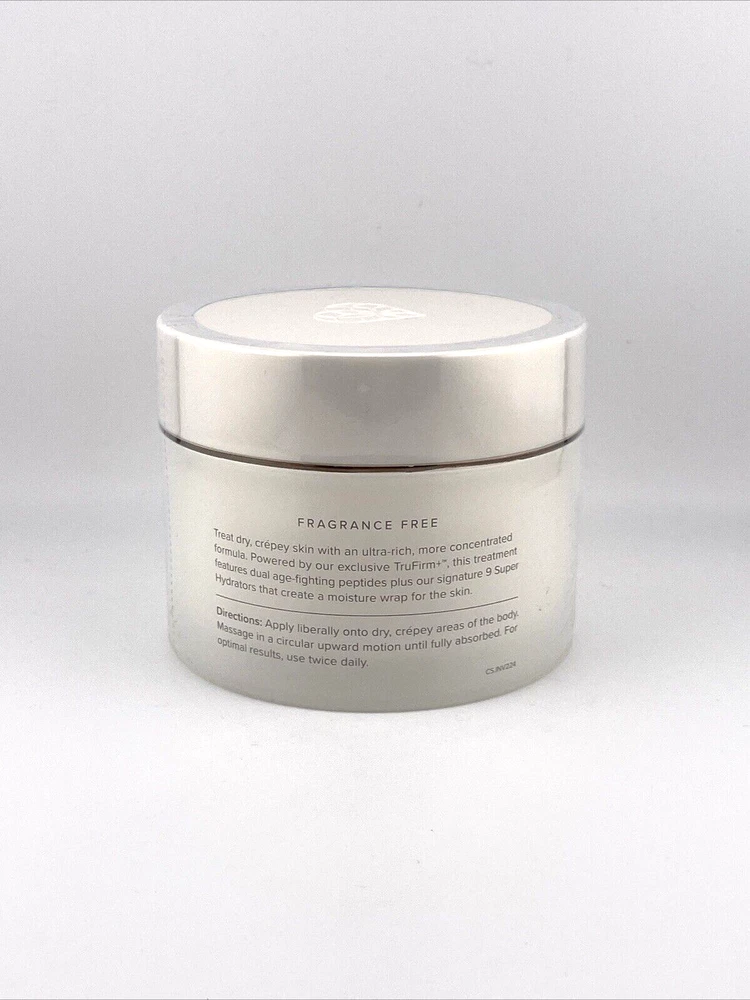 Body Firm Crepe Erase Advanced Body Repair Treatment ULTRA Size : 10 oz Scent : Unscented Condition : Brand New & Sealed Product Overview : The Body Firm Crepe Erase Advanced Body Repair Treatment ULTRA is specially formulated to target aging and crepey skin, restoring smoothness and firmness. This rich, nourishing treatment deeply hydrates and revitalizes skin, improving elasticity and texture for a more youthful appearance. Key Features : Advanced Crepey Skin Treatment : Helps improve the appearance of loose, crepey skin, particularly on the arms, legs, and décolletage. Ultra-Hydrating Formula : Contains TruFirm Complex, a blend of skin-restoring plant extracts, along with moisturizing ingredients that hydrate and lock in moisture. Firming & Smoothing : Works to firm, tighten, and smooth the skin’s texture for a rejuvenated look. Unscented : Ideal for sensitive skin or those who prefer fragrance-free skincare products. For All Skin Types : Gentle enough for daily use on a variety of skin types. How to Use : Apply daily to clean, dry skin. Massage in a circular motion until fully absorbed, focusing on areas prone to crepey skin. Condition : Sealed, brand new. This Crepe Erase Advanced Body Repair Treatment ULTRA is perfect for those looking to address signs of aging and achieve smoother, firmer skin with a fragrance-free, hydrating formula.