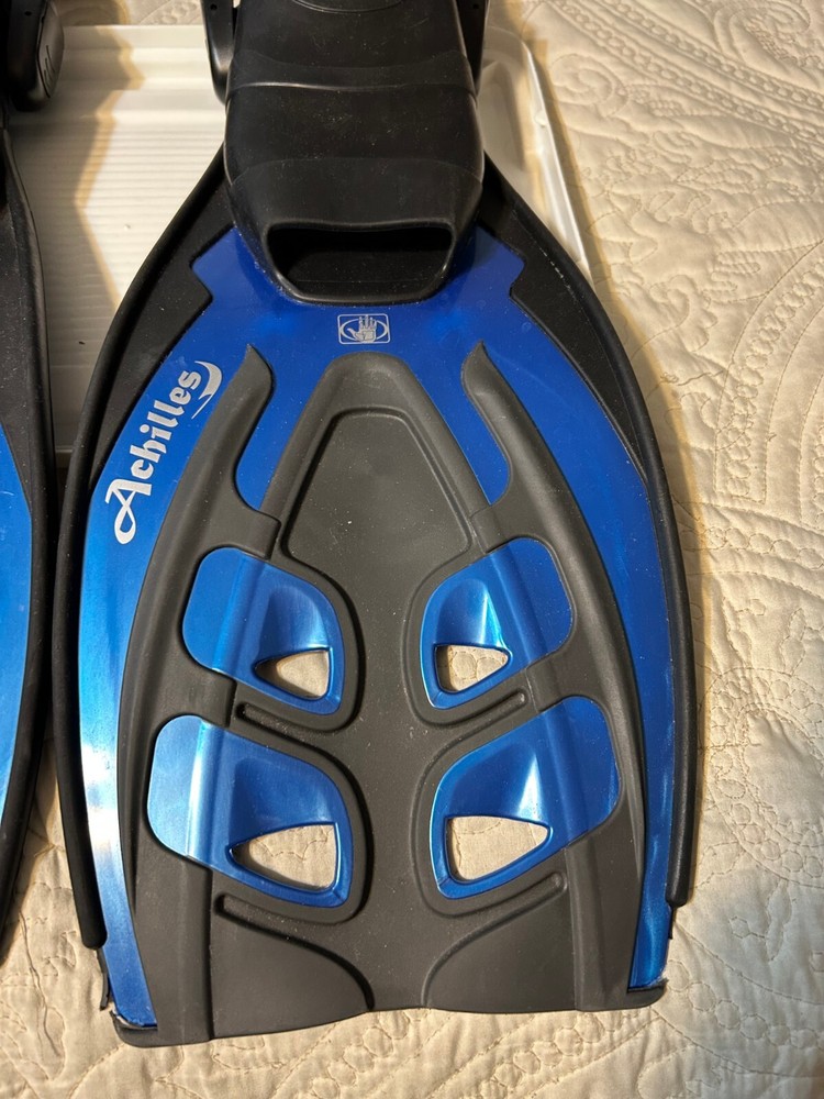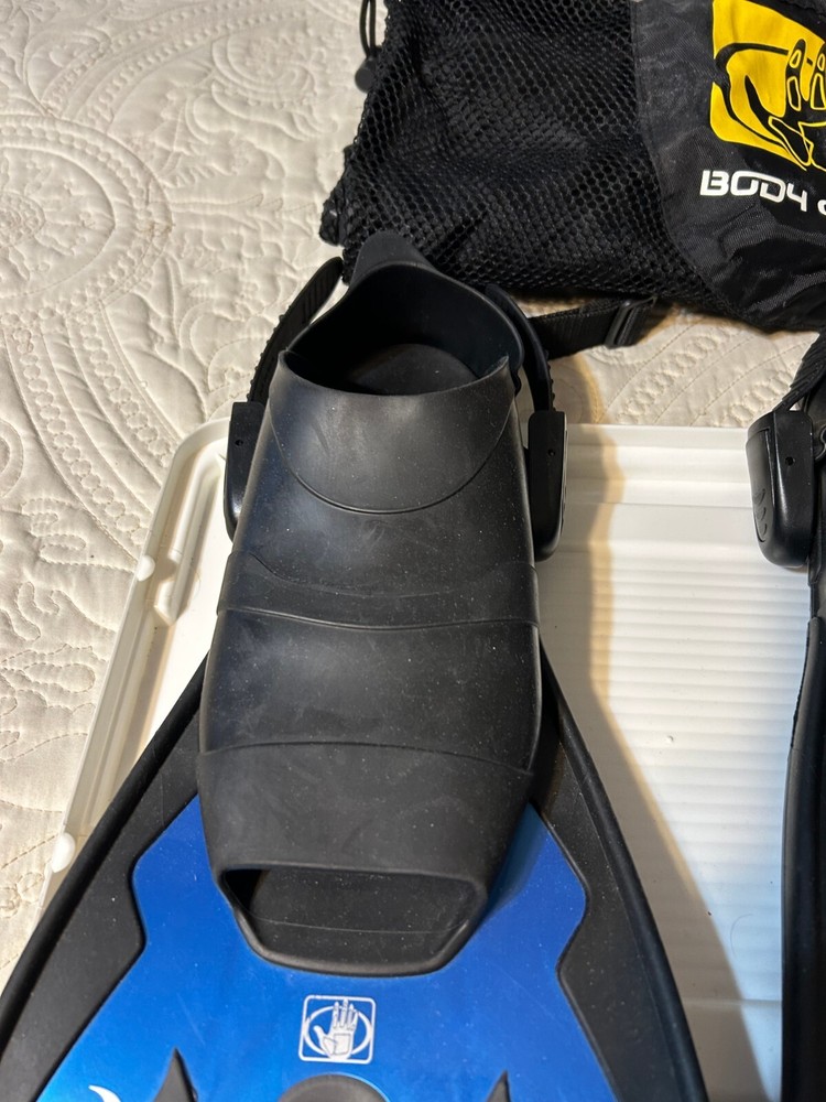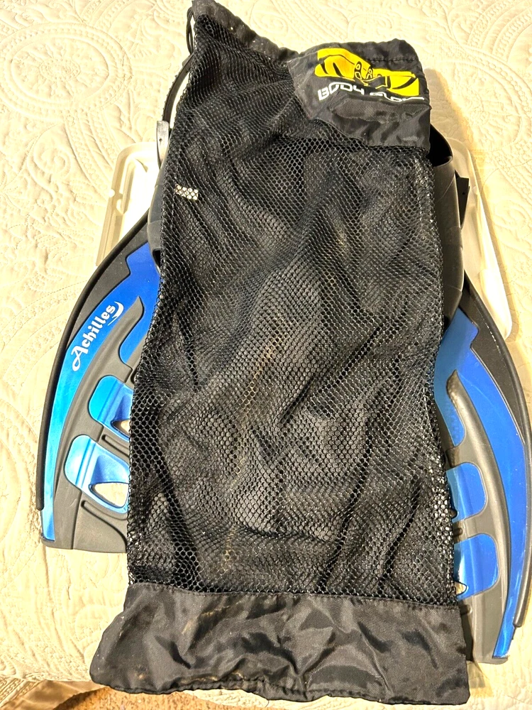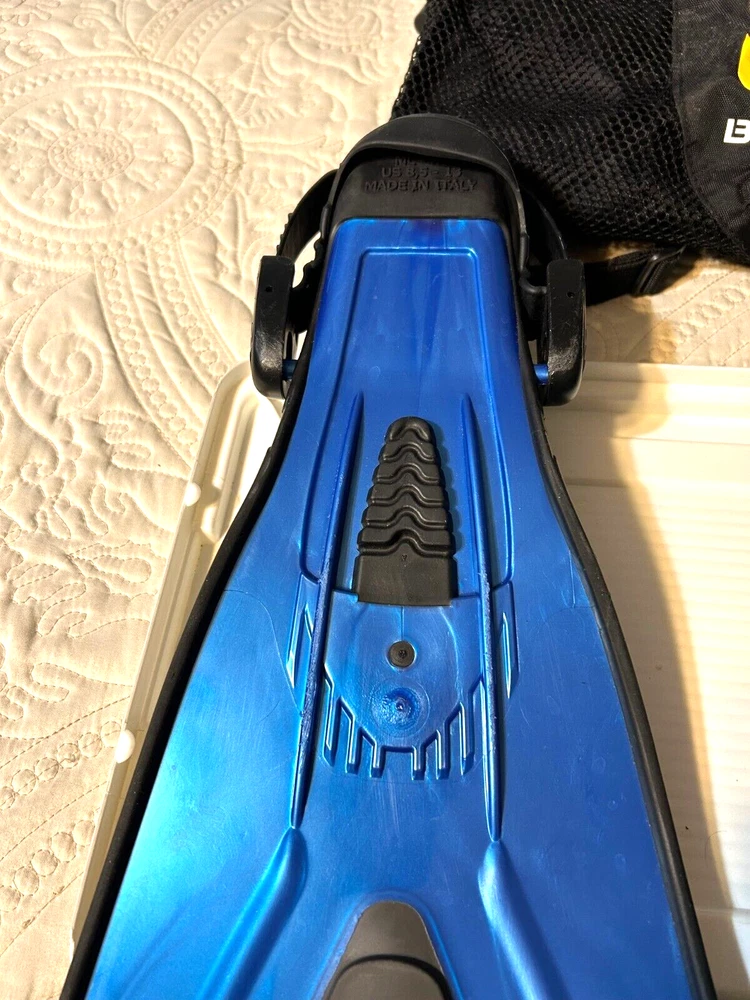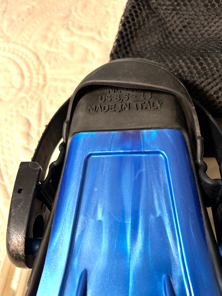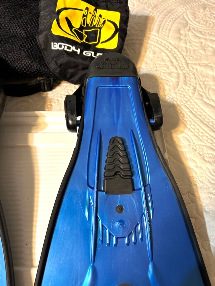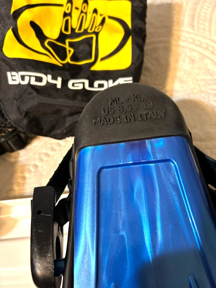 Body Glove Achilles Fin Set Adult Size ML-XL US 8,5-13 Black & Blue With Carry Bag Made in ITALY.
