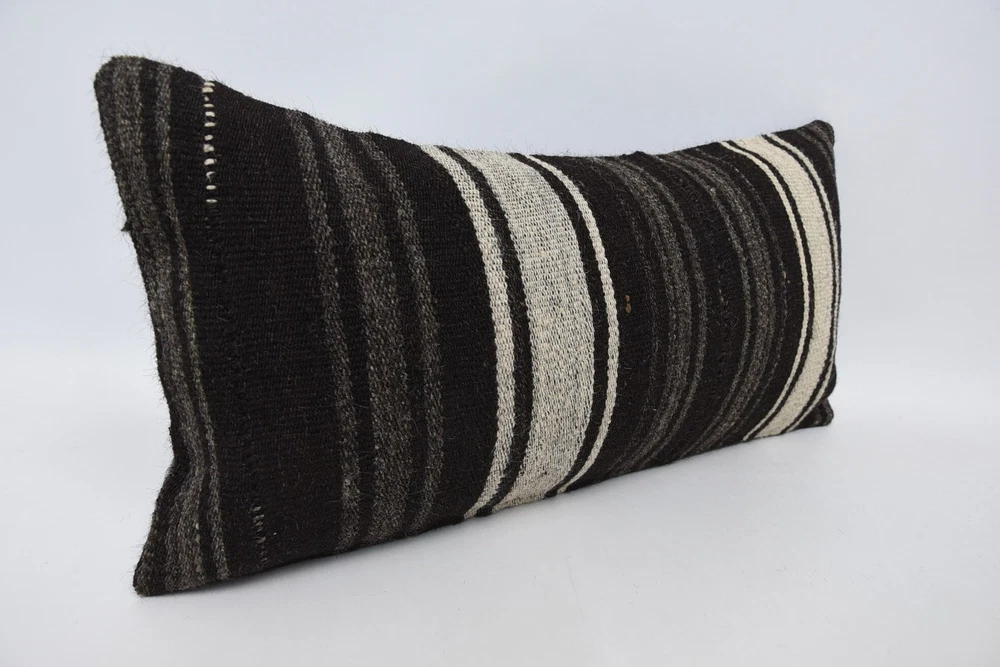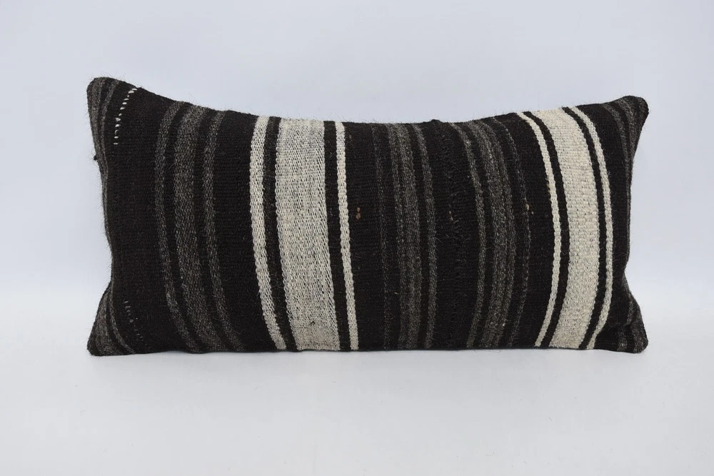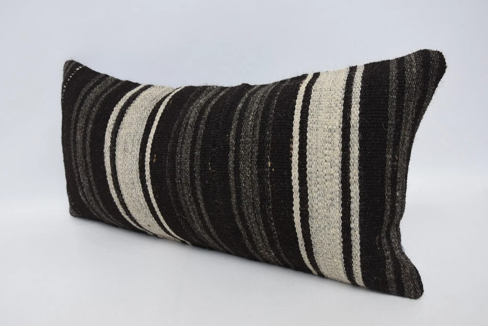 Body Pillow, 12"x24" Brown Pillow Case, Kilim Pillow Cover, Turkish Pillow